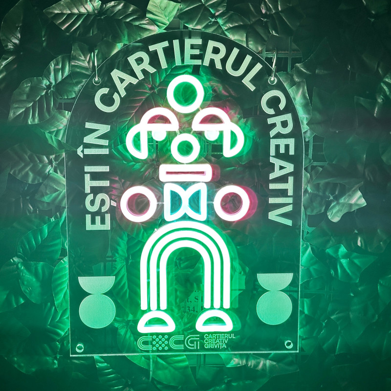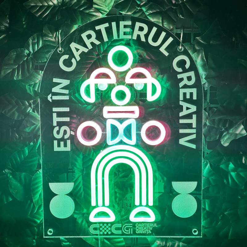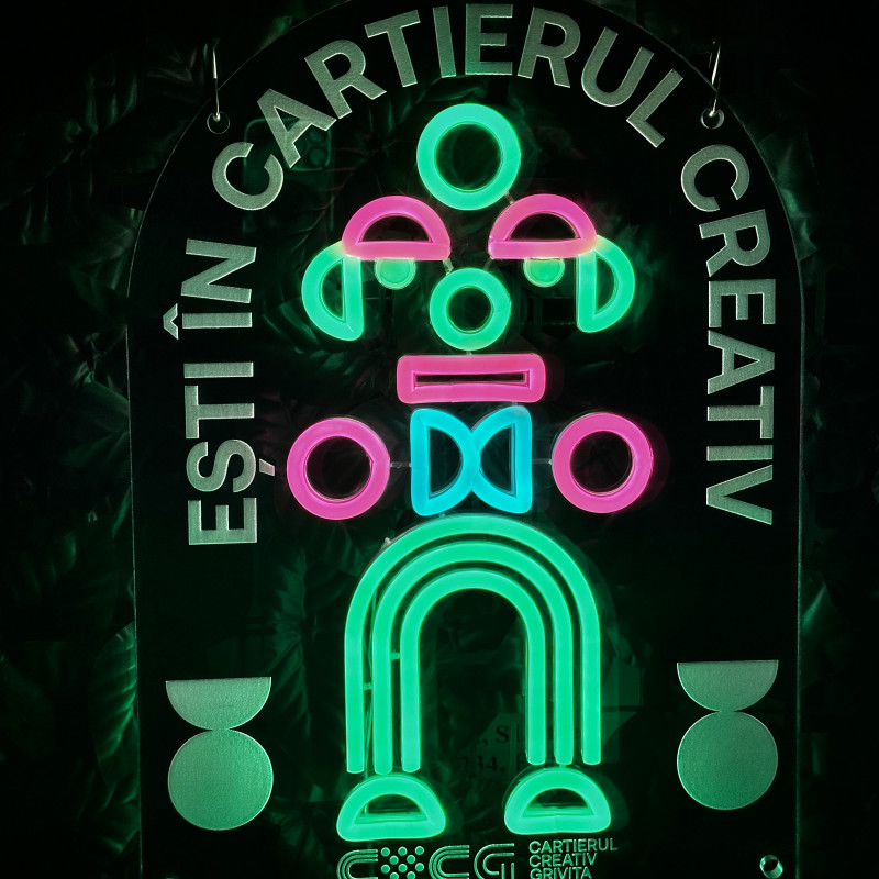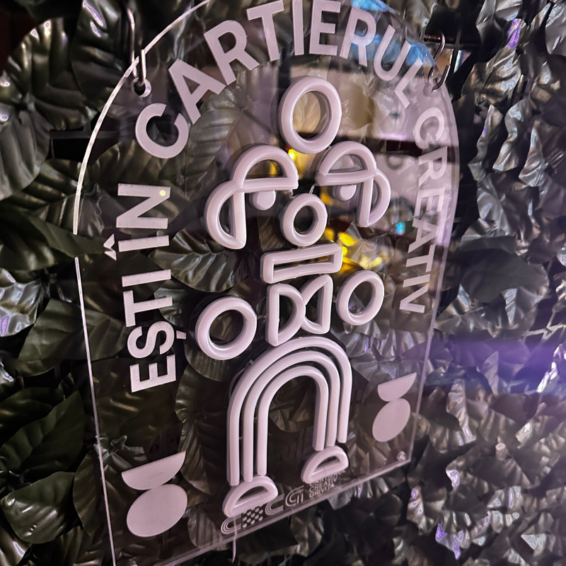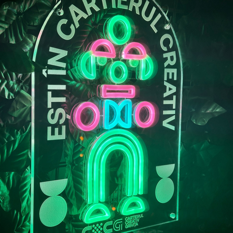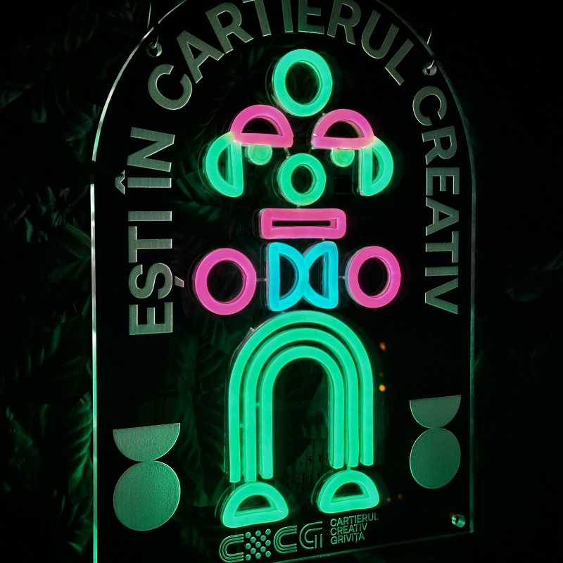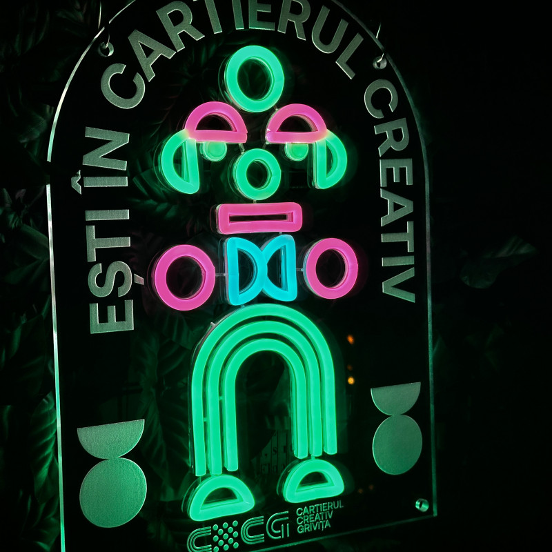 Cartierul Creativ reunește inițiative culturale și antreprenoriat creativ într-un spațiu urban dedicat artelor și comunității. Pentru ei am realizat semnul luminos ESTI IN CARTIERUL CREATIV clovn, conceput ca ancoră de orientare și identitate în zone de întâmpinare, trasee pietonale sau photo spot. Tipografie clară, simbol clovn ca accent vizual, profil subțire, lumină uniformă, montaj curat; personalizabil în dimensiuni, culori și finisaje pentru integrare în wayfinding și activări culturale.