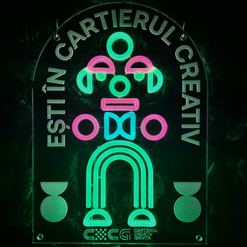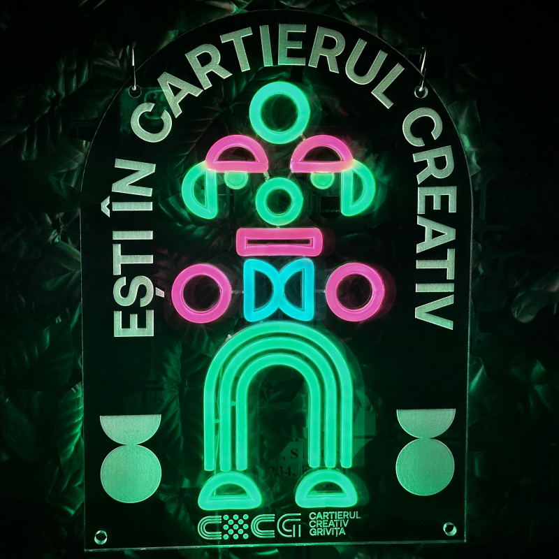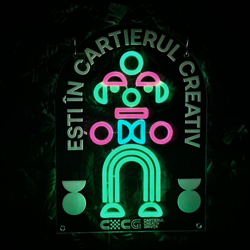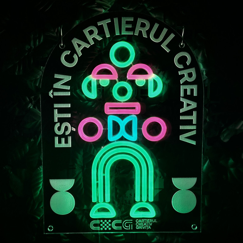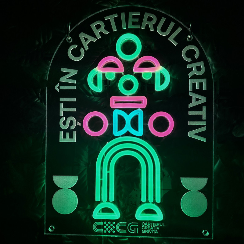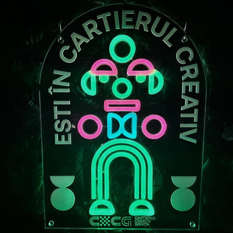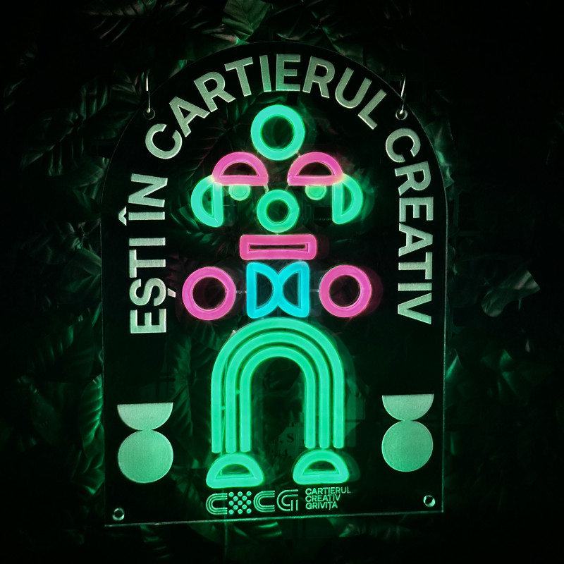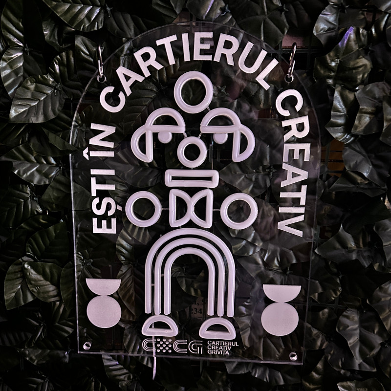 Cartierul Creativ reunește inițiative culturale și antreprenoriat creativ într-un spațiu urban dedicat artelor și comunității. Pentru ei am realizat semnul luminos ESTI IN CARTIERUL CREATIV clovn, conceput ca ancoră de orientare și identitate în zone de întâmpinare, trasee pietonale sau photo spot. Tipografie clară, simbol clovn ca accent vizual, profil subțire, lumină uniformă, montaj curat; personalizabil în dimensiuni, culori și finisaje pentru integrare în wayfinding și activări culturale.
