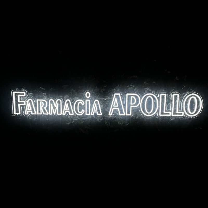 Semnul luminos „FARMACIA APOLLO” oferă vizibilitate clară pentru fațadă, recepție sau zona de casă. Profil subțire, lumină uniformă, montaj curat; lizibil de la distanță și fotogenic în foto/video. Personalizabil rapid (dimensiuni, culori, finisaje, simbol cruce/medical) pentru a se integra în orice concept de farmacie sau clinică.