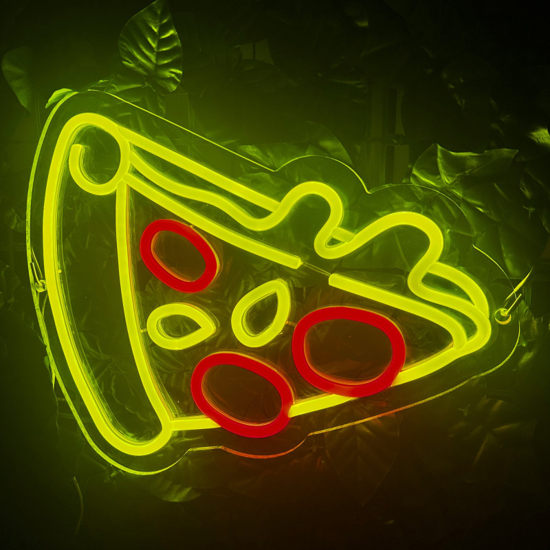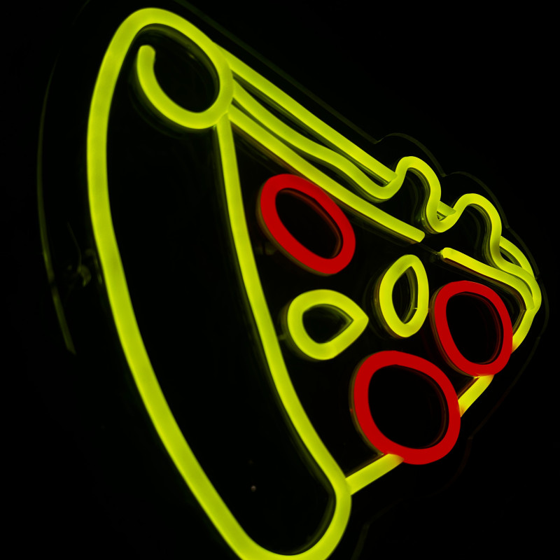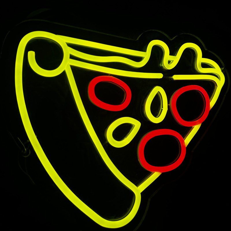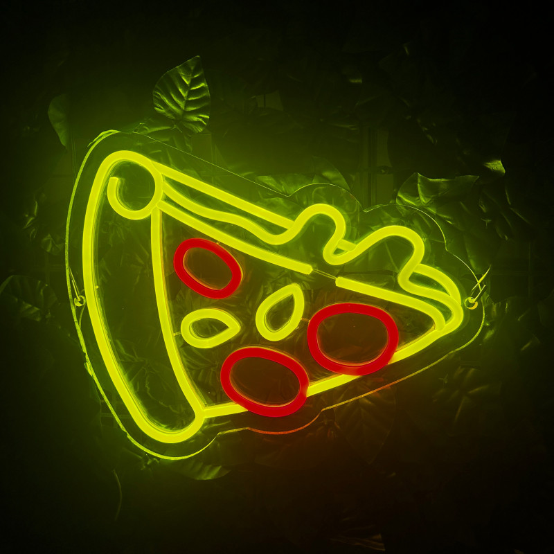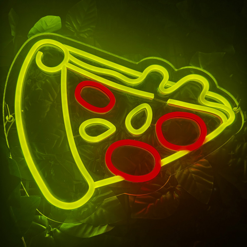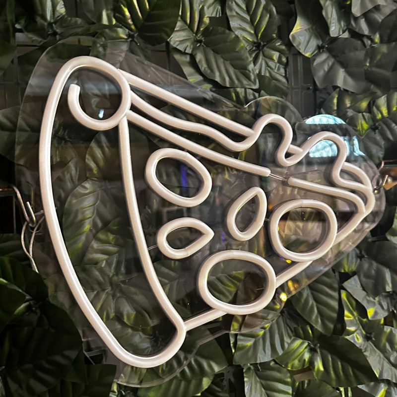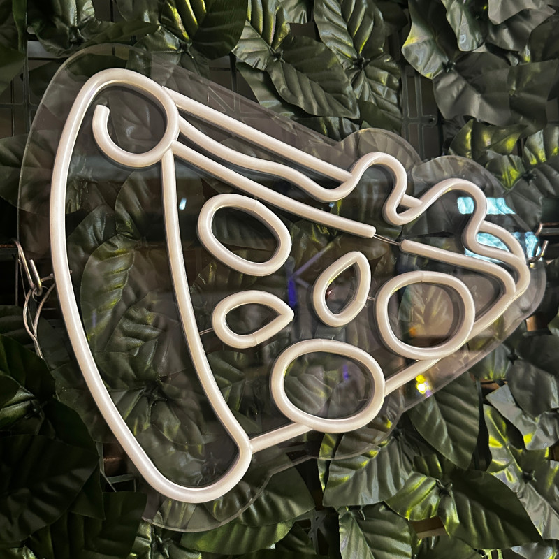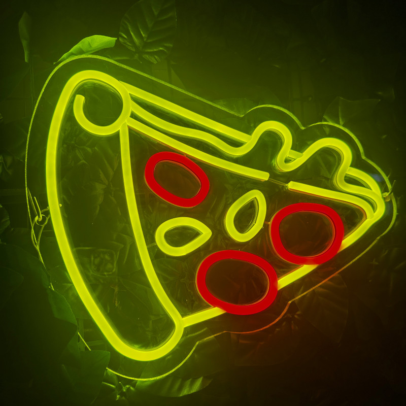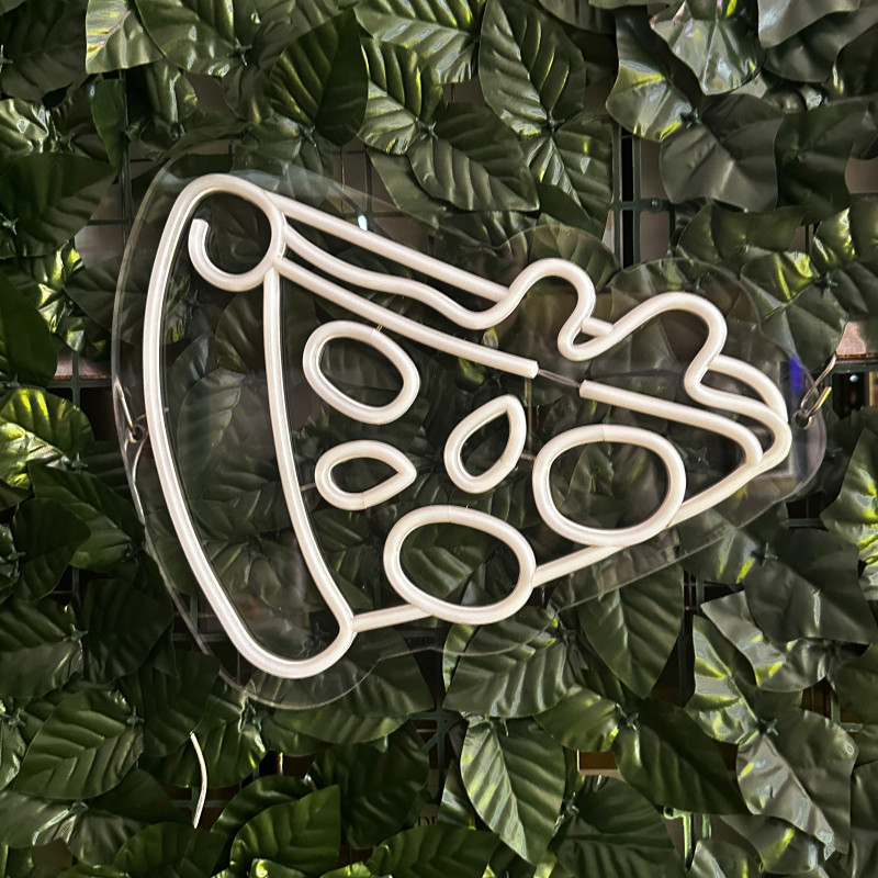 Semnul luminos în formă de felie de pizza este un magnet vizual pentru fațadă, vitrină, punct de servire sau brand wall. Profil subțire, lumină uniformă, montaj curat; vizibil de la distanță și fotogenic în foto/video. Personalizabil rapid (dimensiuni, culori — roșu/galben/verde, finisaje, contur dublu/blink) pentru orice estetică de pizzerie sau street food.