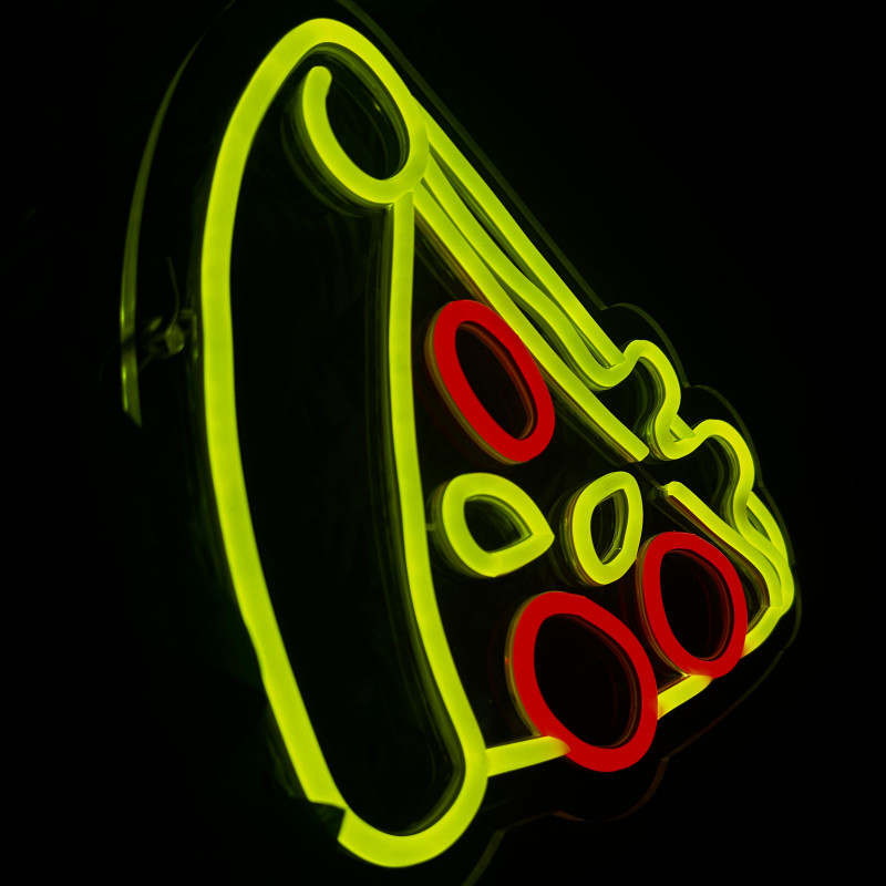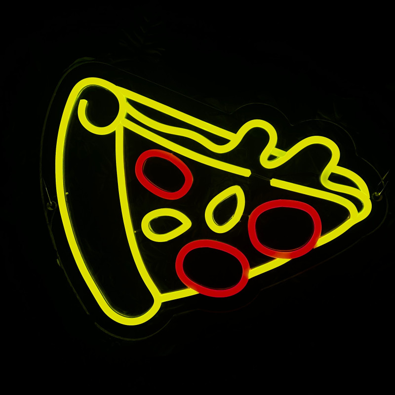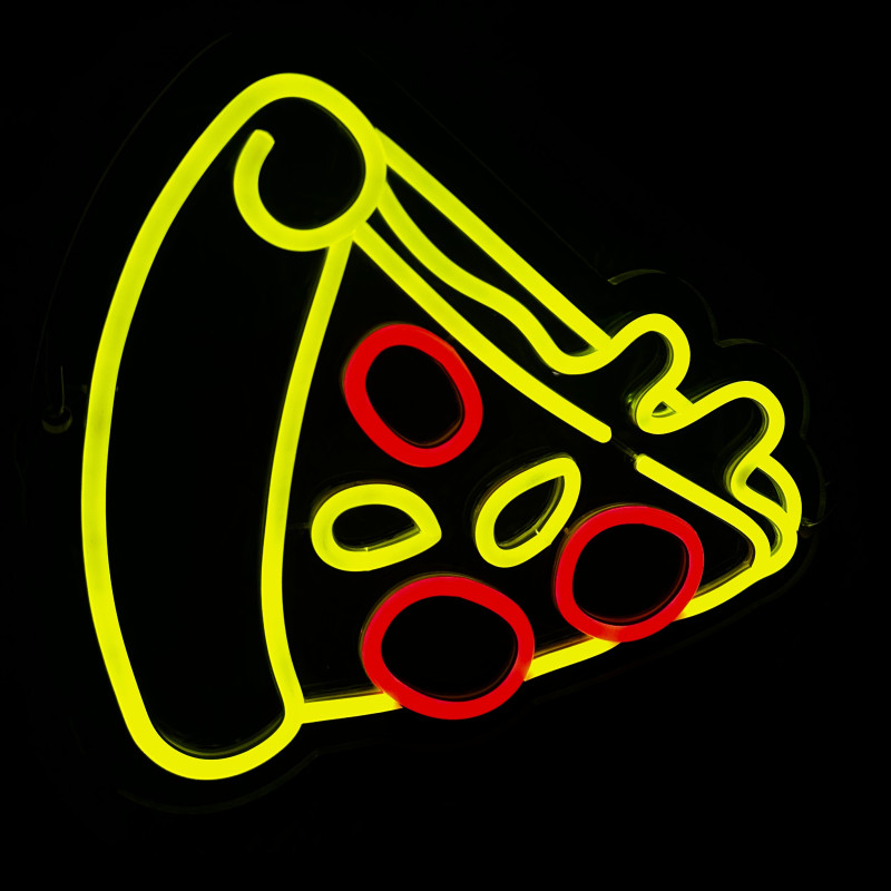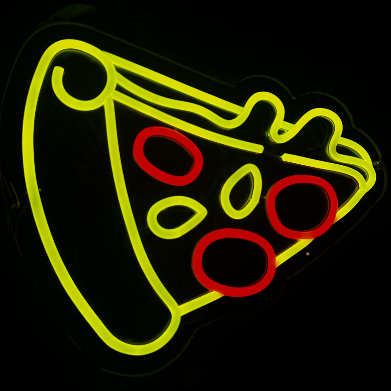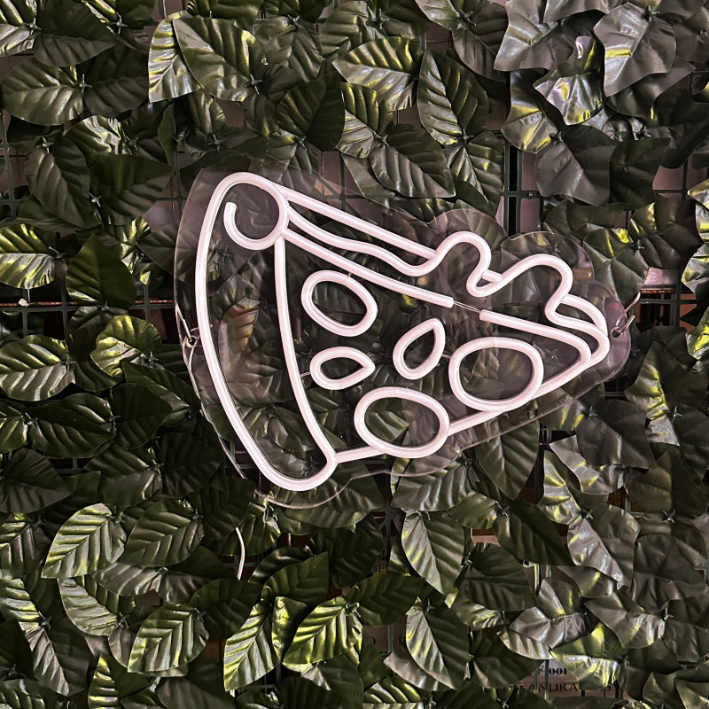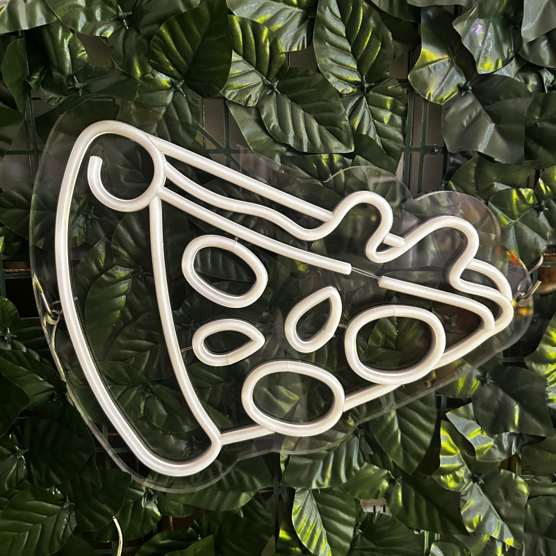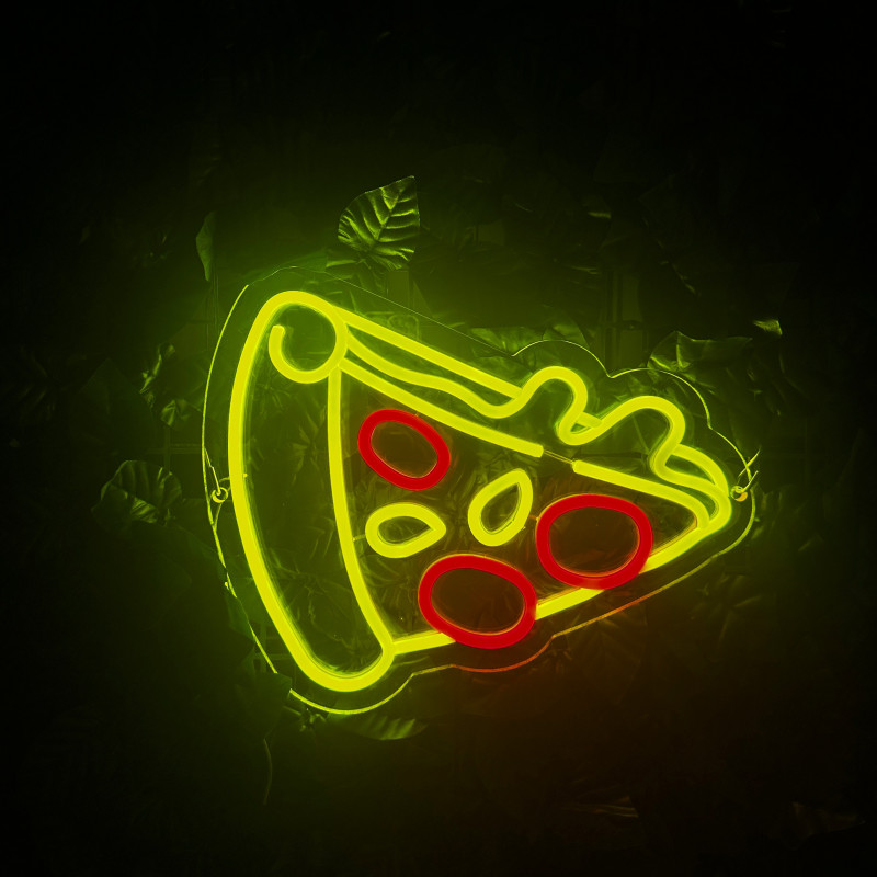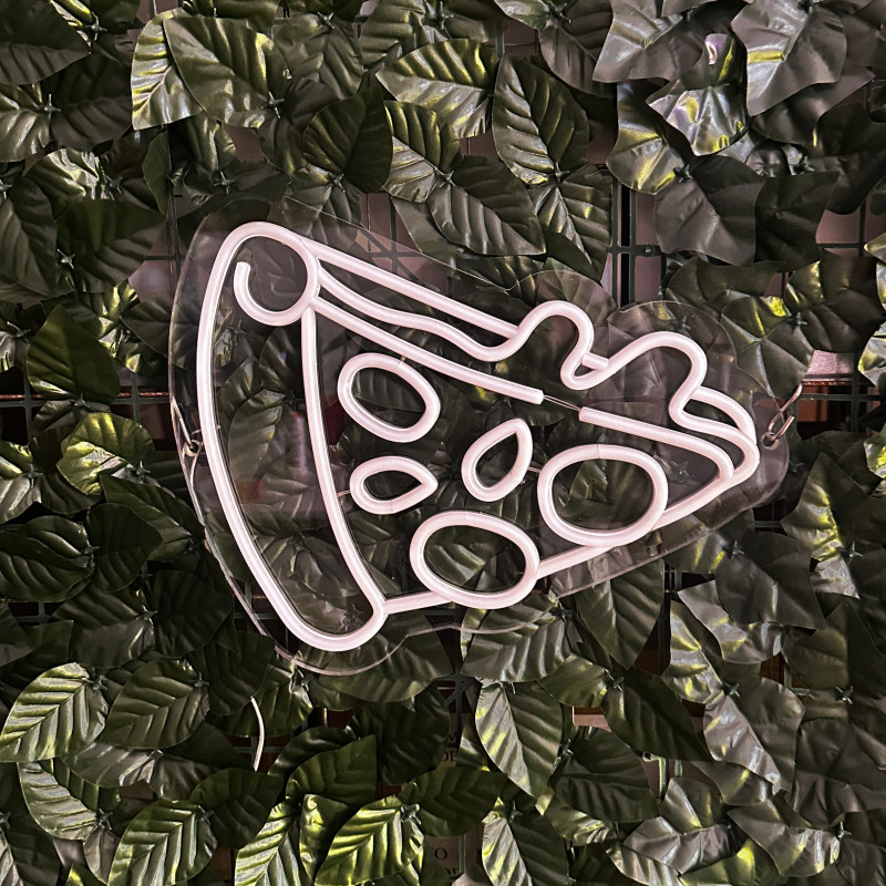 Semnul luminos în formă de felie de pizza este un magnet vizual pentru fațadă, vitrină, punct de servire sau brand wall. Profil subțire, lumină uniformă, montaj curat; vizibil de la distanță și fotogenic în foto/video. Personalizabil rapid (dimensiuni, culori — roșu/galben/verde, finisaje, contur dublu/blink) pentru orice estetică de pizzerie sau street food.