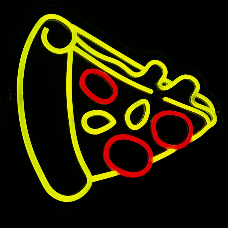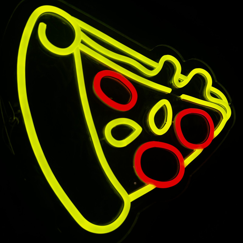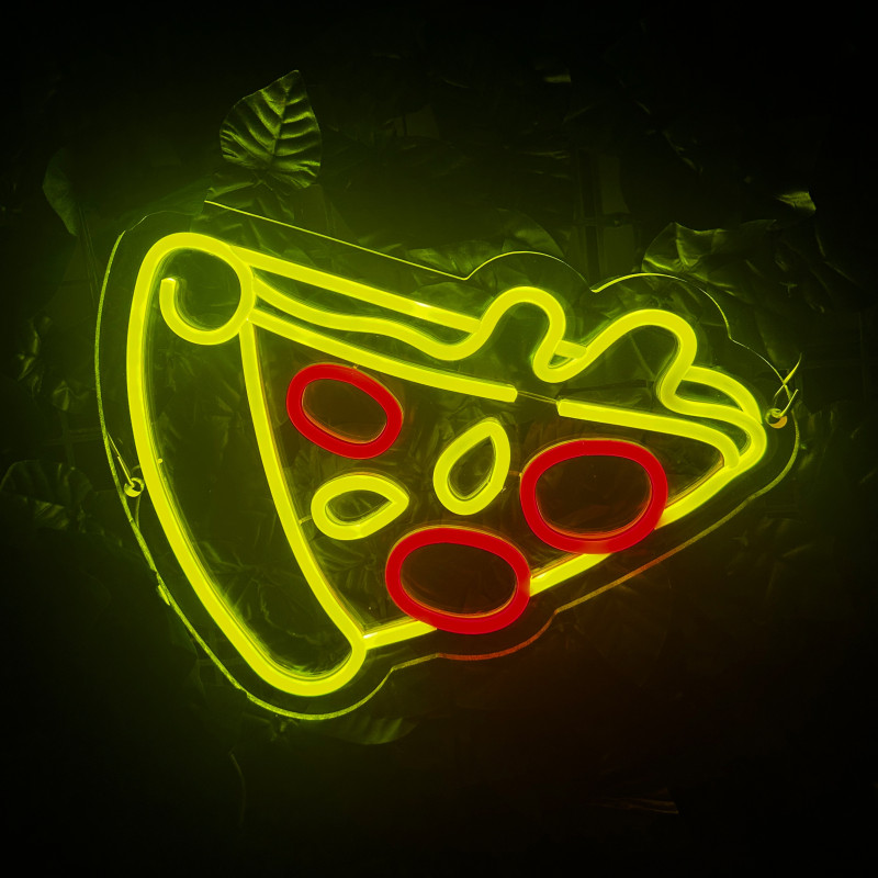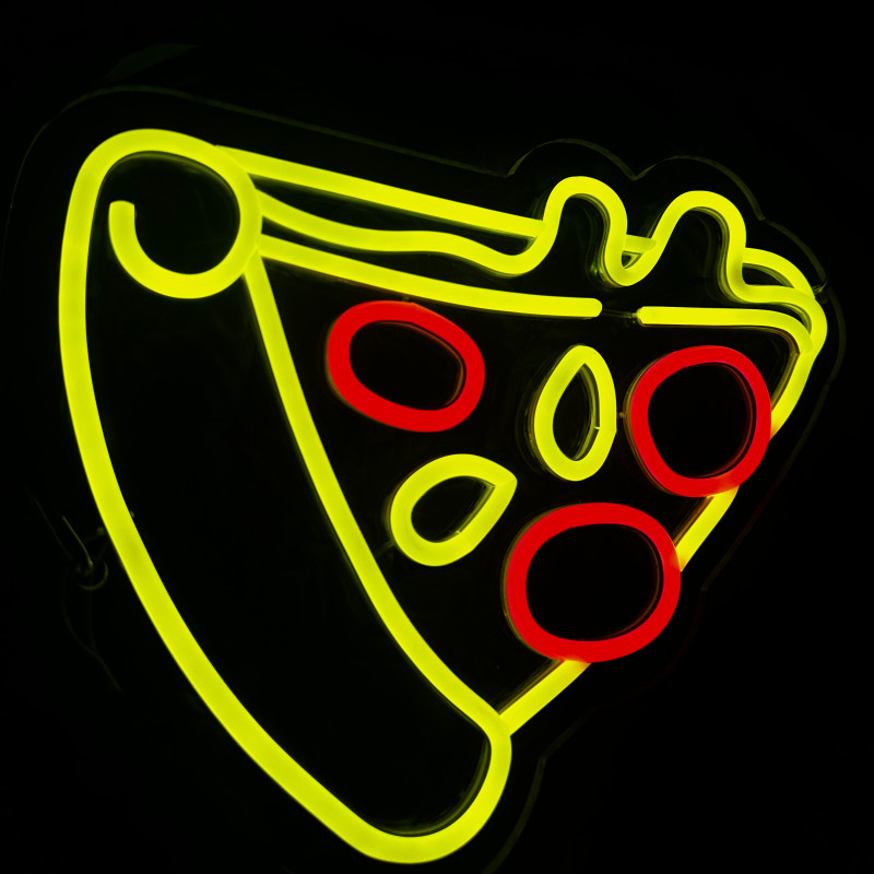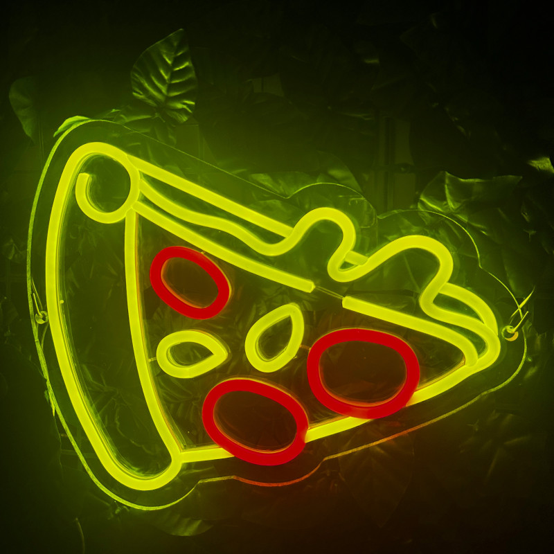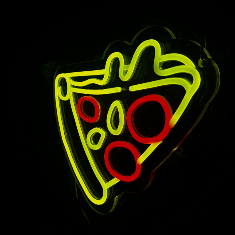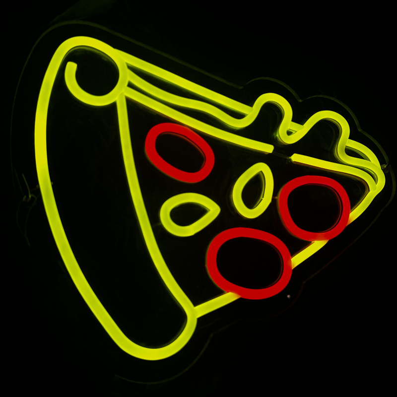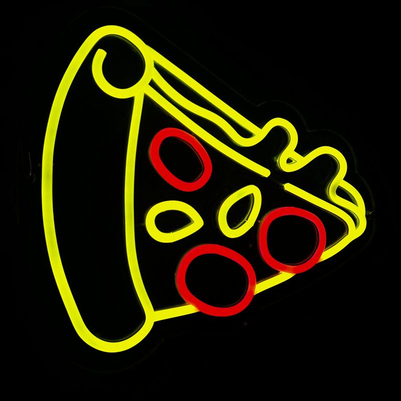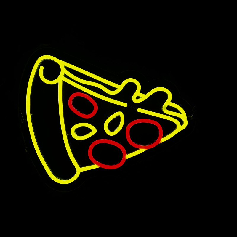 Semnul luminos în formă de felie de pizza este un magnet vizual pentru fațadă, vitrină, punct de servire sau brand wall. Profil subțire, lumină uniformă, montaj curat; vizibil de la distanță și fotogenic în foto/video. Personalizabil rapid (dimensiuni, culori — roșu/galben/verde, finisaje, contur dublu/blink) pentru orice estetică de pizzerie sau street food.