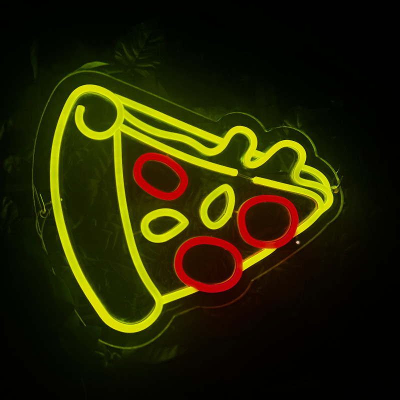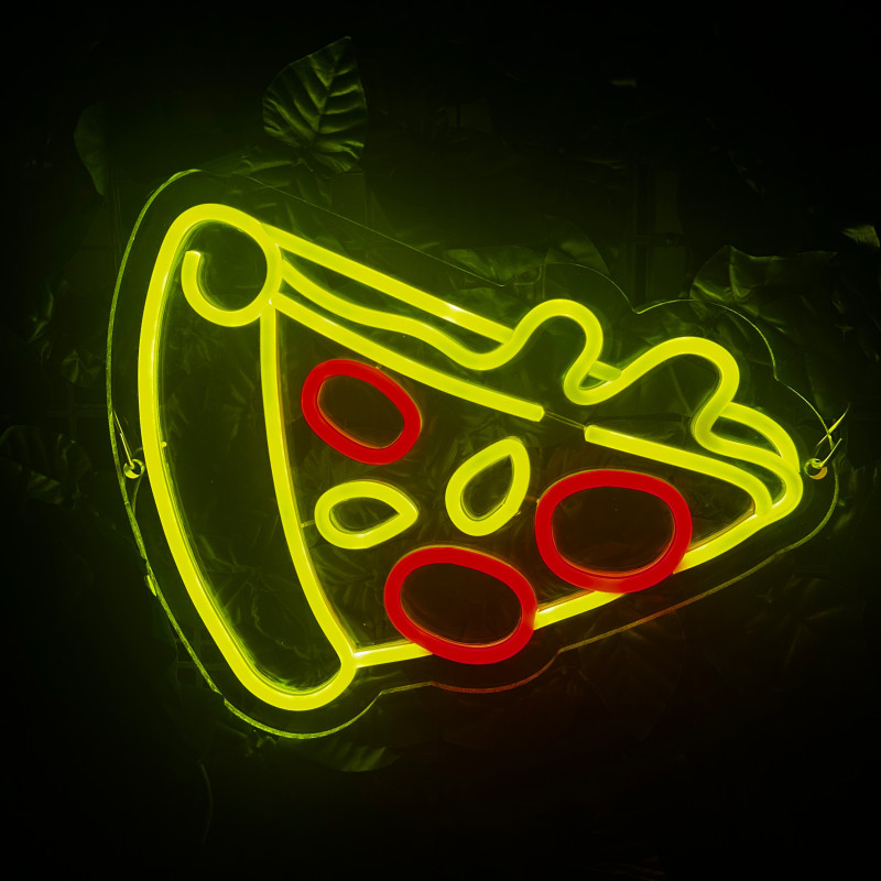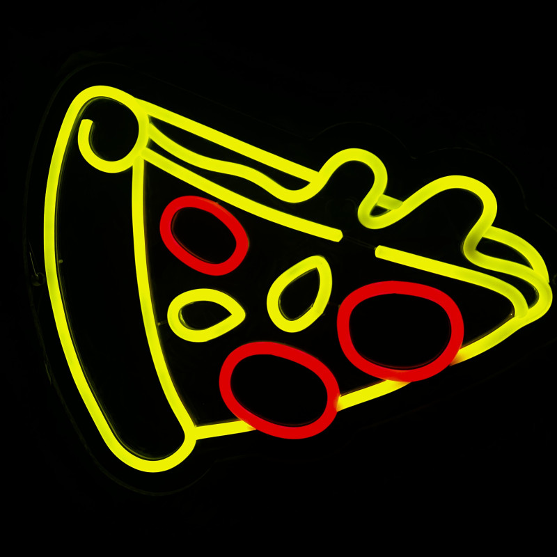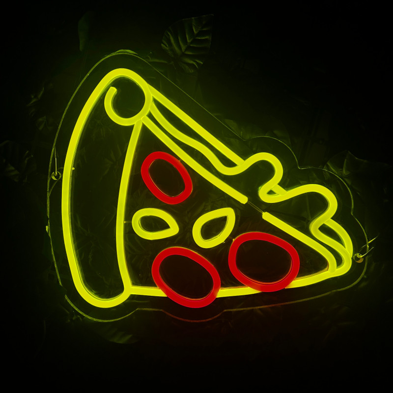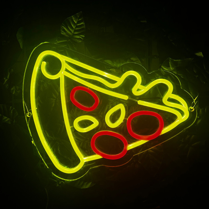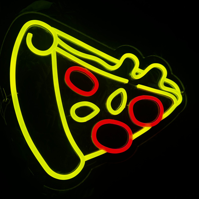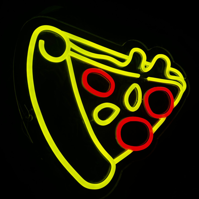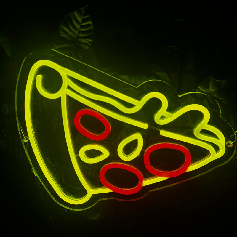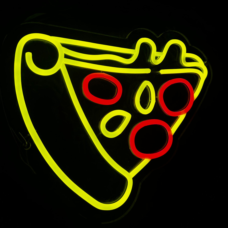 Semnul luminos în formă de felie de pizza este un magnet vizual pentru fațadă, vitrină, punct de servire sau brand wall. Profil subțire, lumină uniformă, montaj curat; vizibil de la distanță și fotogenic în foto/video. Personalizabil rapid (dimensiuni, culori — roșu/galben/verde, finisaje, contur dublu/blink) pentru orice estetică de pizzerie sau street food.