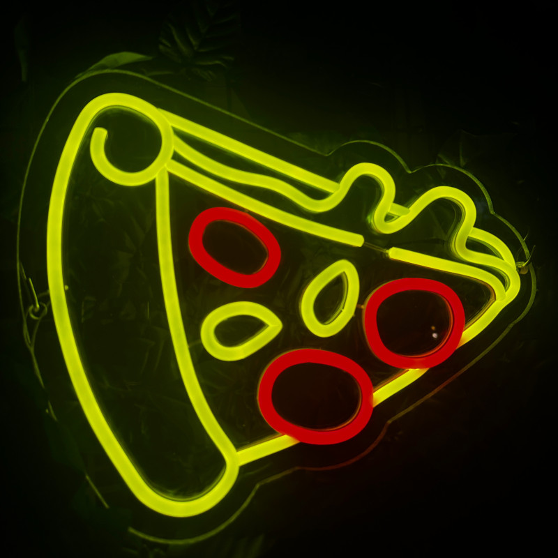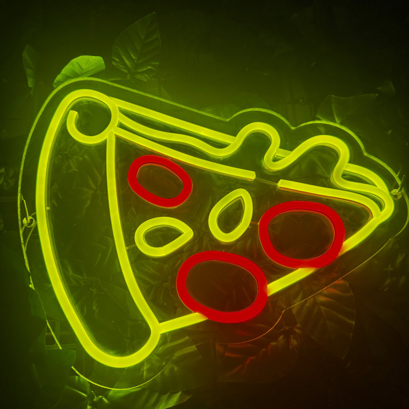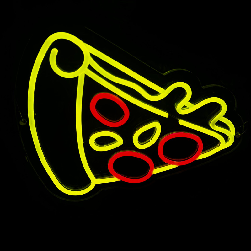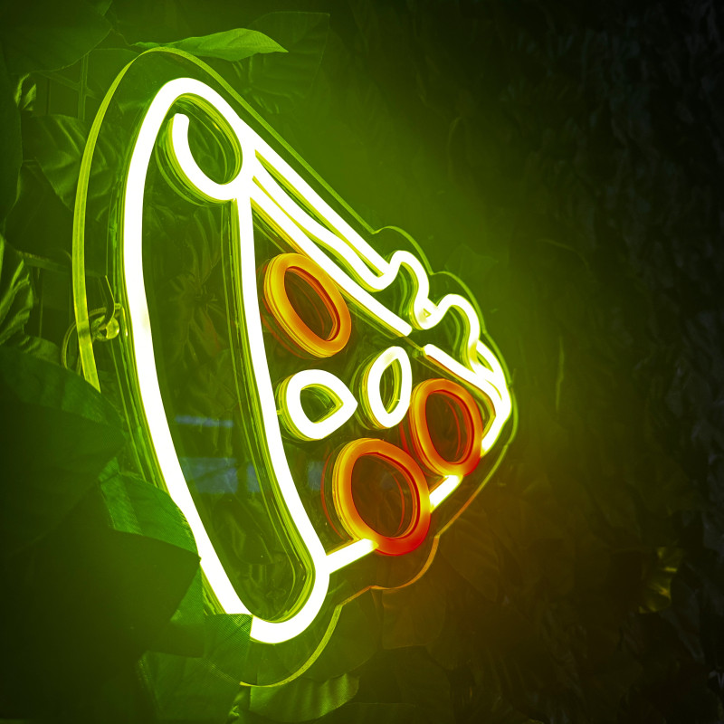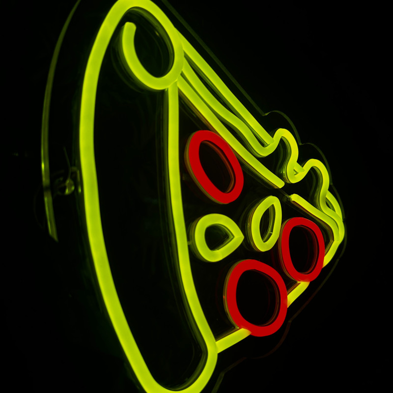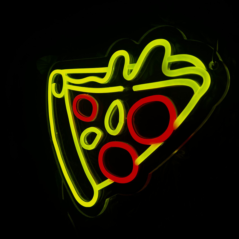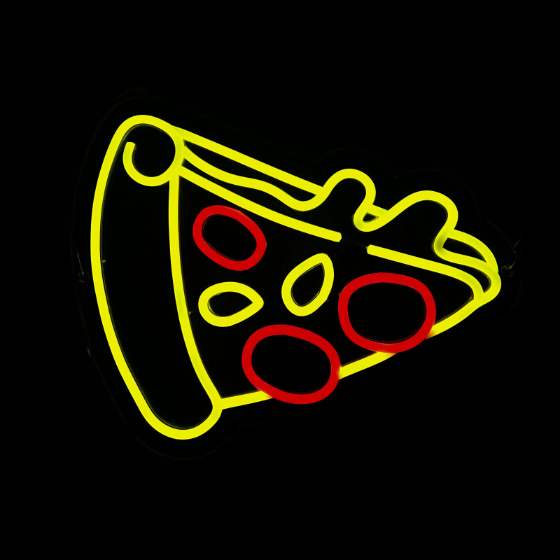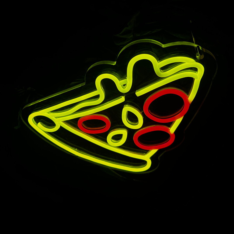 Semnul luminos în formă de felie de pizza este un magnet vizual pentru fațadă, vitrină, punct de servire sau brand wall. Profil subțire, lumină uniformă, montaj curat; vizibil de la distanță și fotogenic în foto/video. Personalizabil rapid (dimensiuni, culori — roșu/galben/verde, finisaje, contur dublu/blink) pentru orice estetică de pizzerie sau street food.