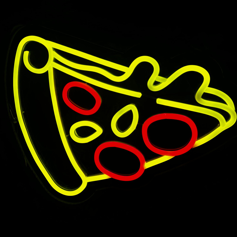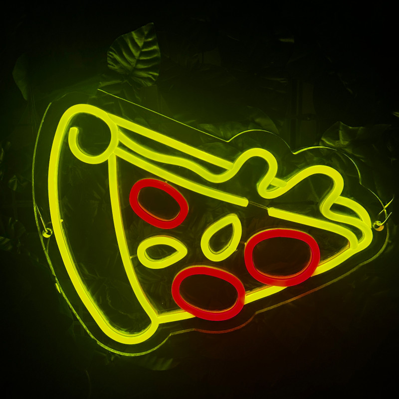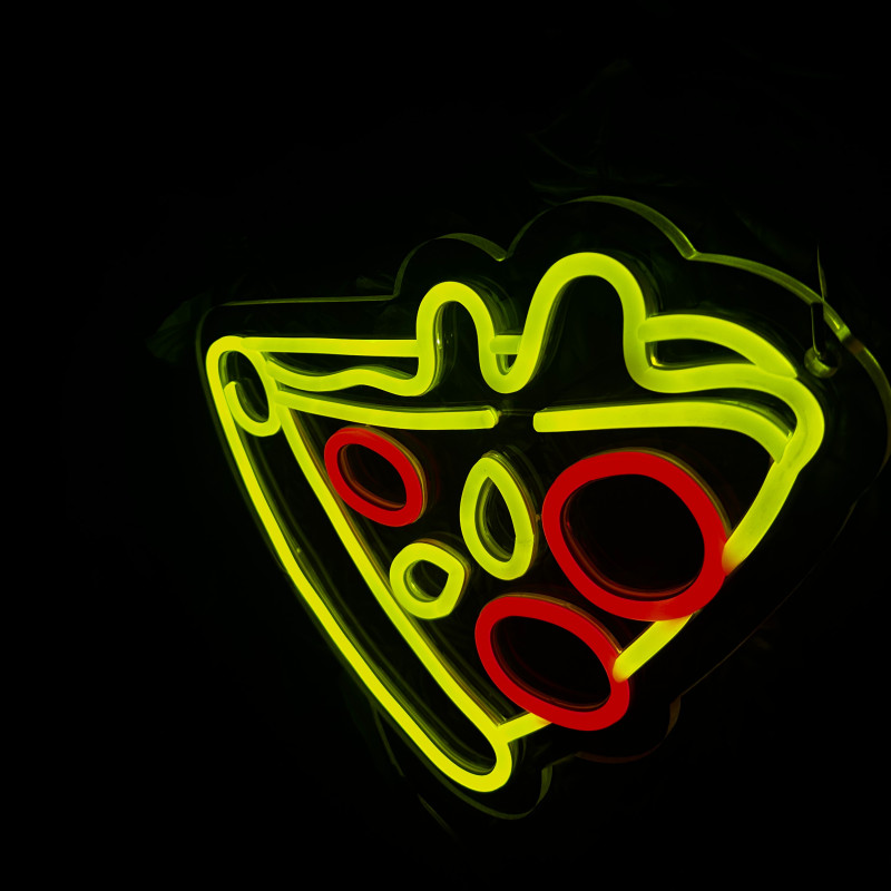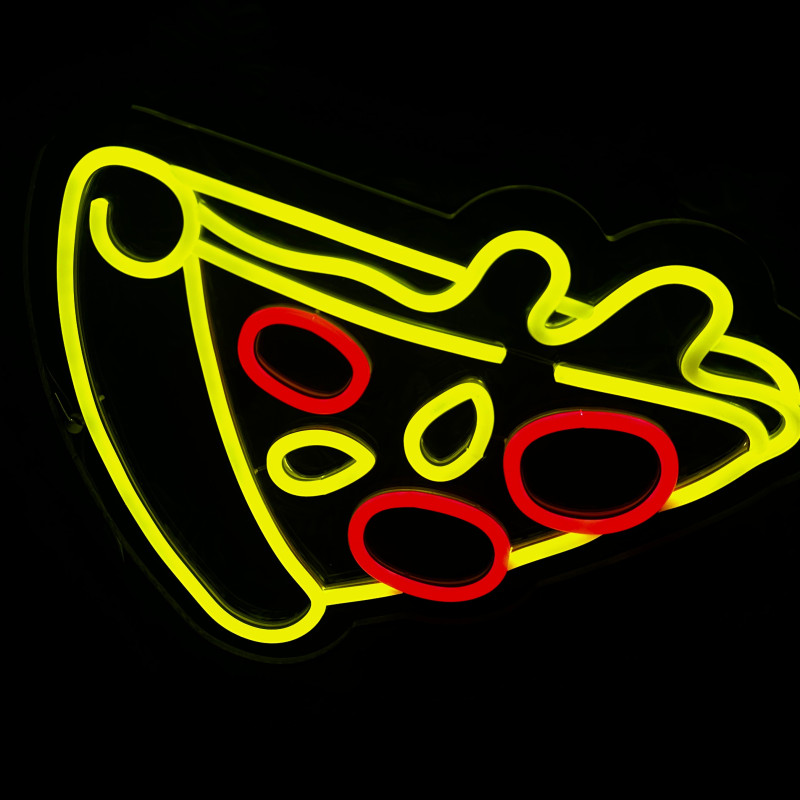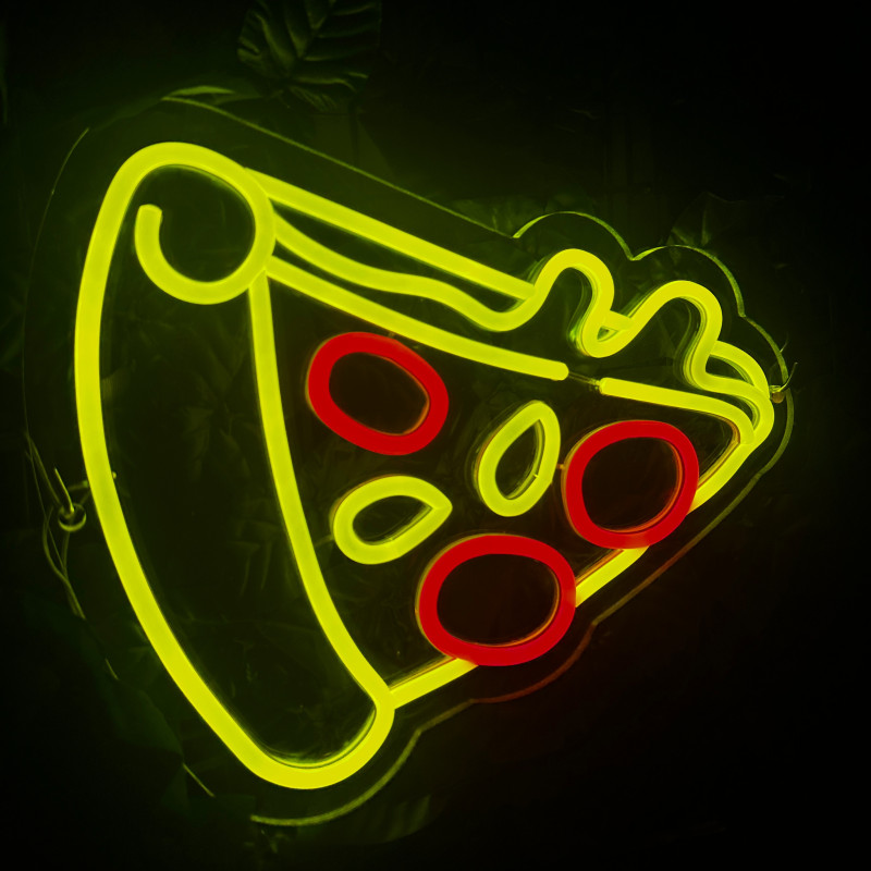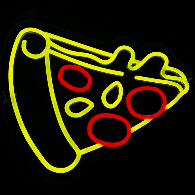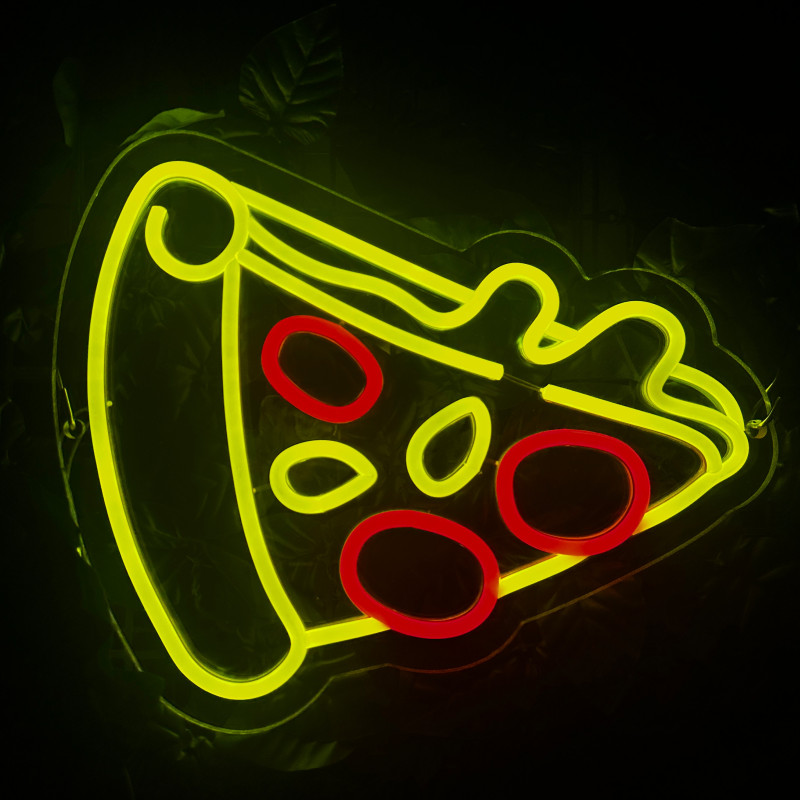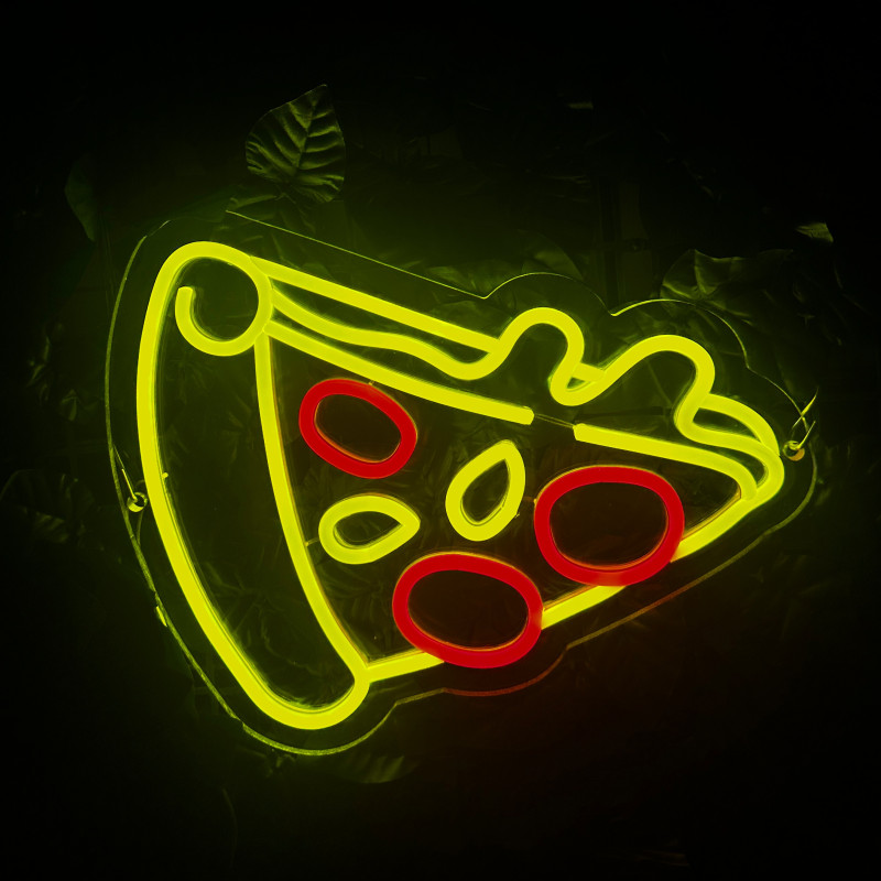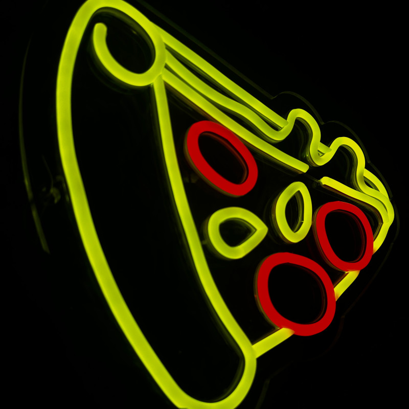 Semnul luminos în formă de felie de pizza este un magnet vizual pentru fațadă, vitrină, punct de servire sau brand wall. Profil subțire, lumină uniformă, montaj curat; vizibil de la distanță și fotogenic în foto/video. Personalizabil rapid (dimensiuni, culori — roșu/galben/verde, finisaje, contur dublu/blink) pentru orice estetică de pizzerie sau street food.