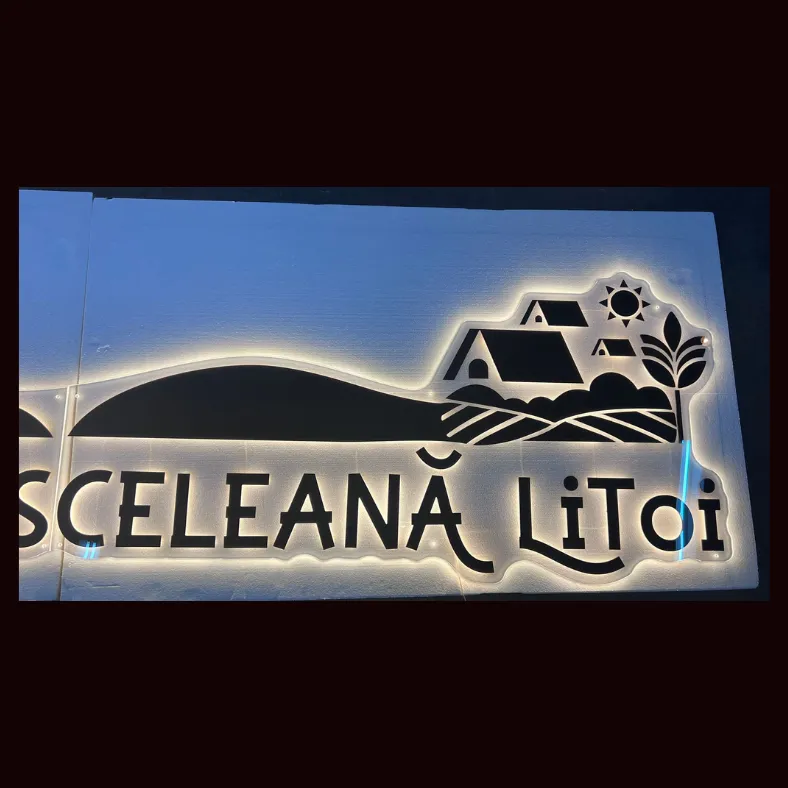 Pentru Ferma Musceleană „La Lițoi” a fost realizat un semn luminos personalizat, de exterior, realizat din plexiglas transparent și plexiglas negru, iluminat din spate cu LED, pentru un efect vizual modern și elegant.