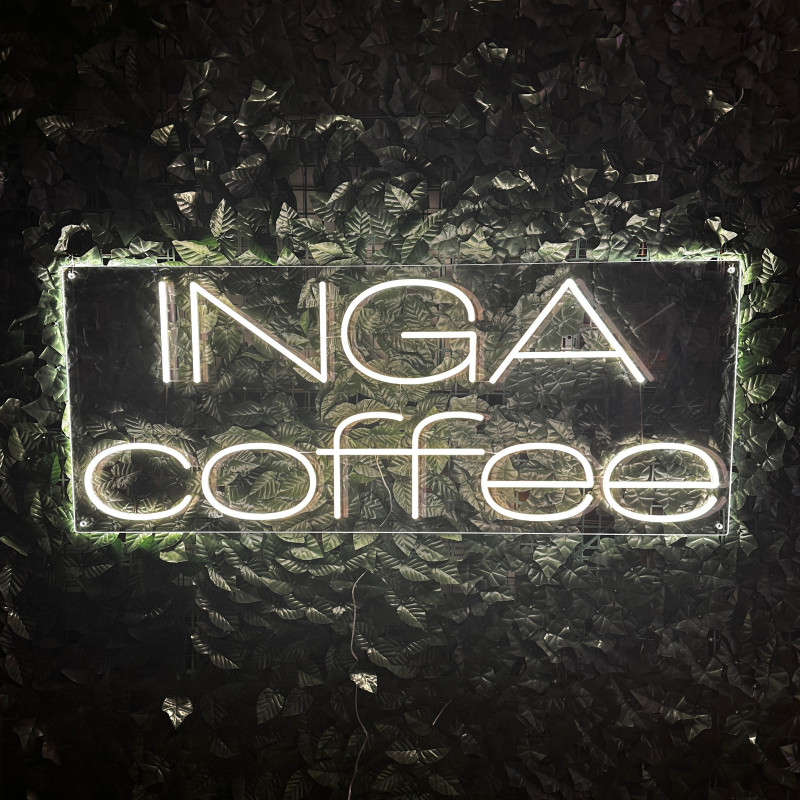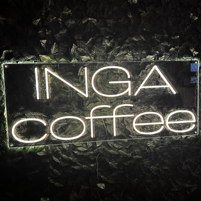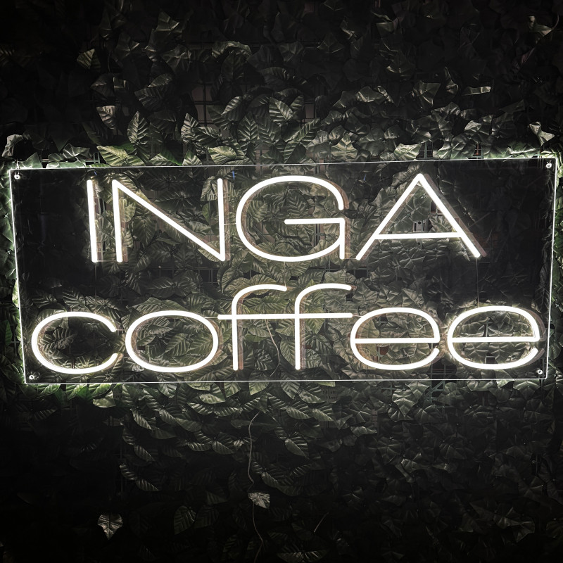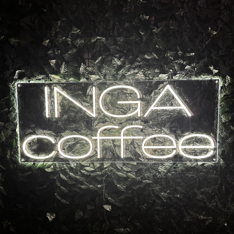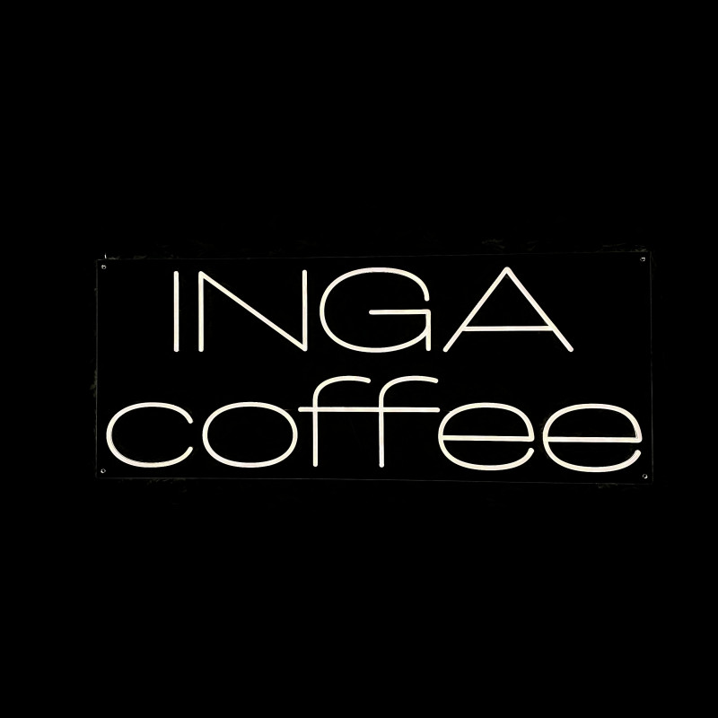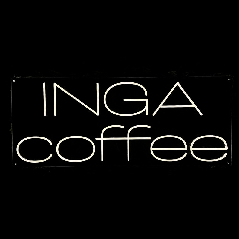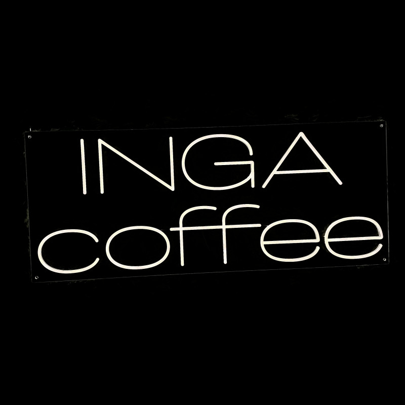 INGA promovează experiențe moderne de coffee corner / coffee catering pentru spații corporate și evenimente. Pentru ei am creat semnul luminos „INGA coffee”, gândit ca ancoră vizuală pentru fațadă, bar de cafea, recepție sau brand wall: profil subțire, lumină uniformă, montaj curat și fotogenie excelentă. Personalizabil rapid (dimensiuni, culori — inclusiv tonuri calde, finisaje).