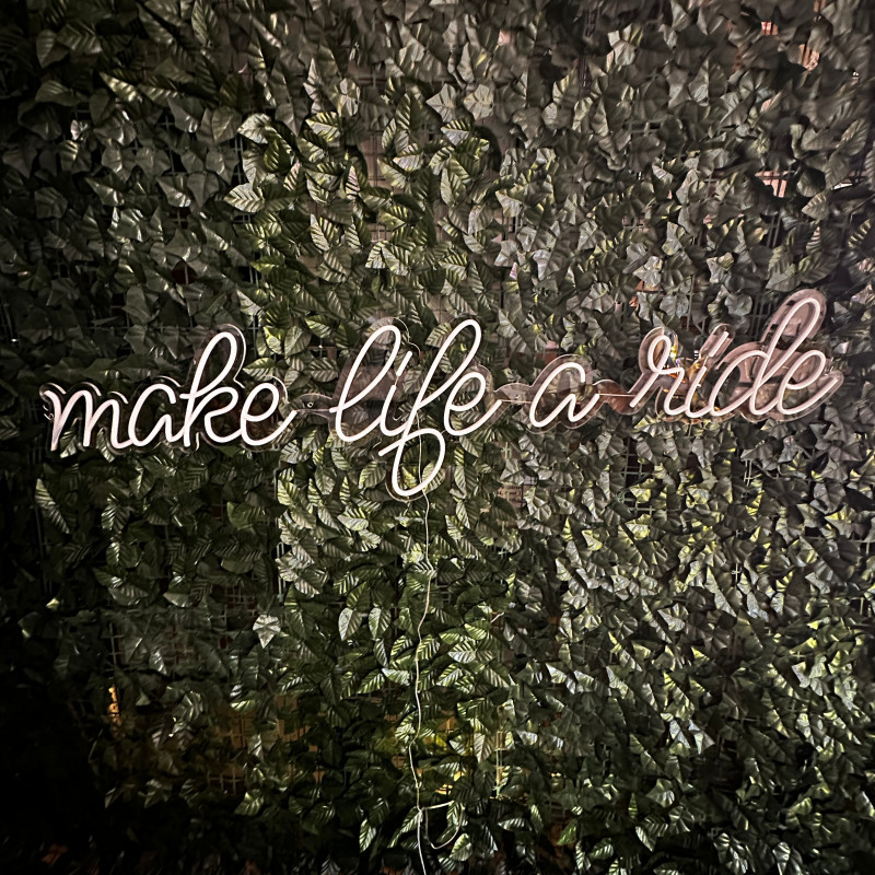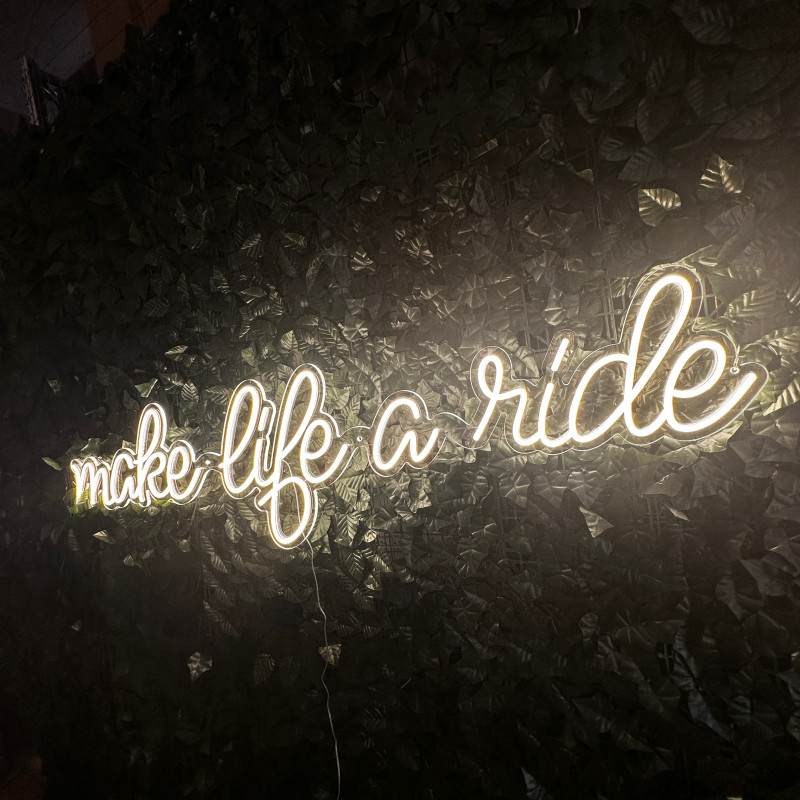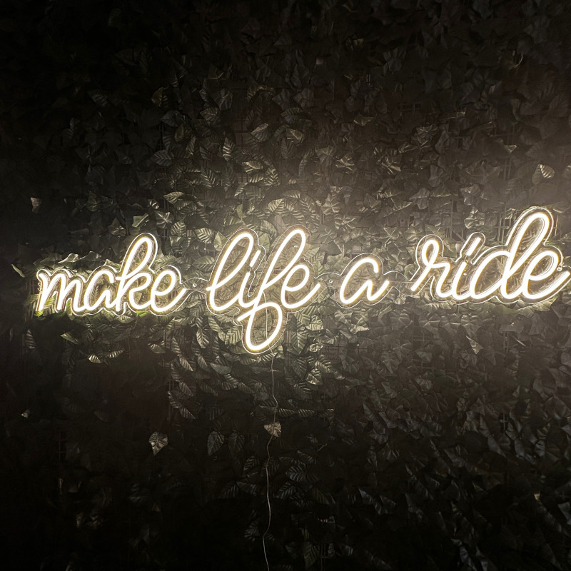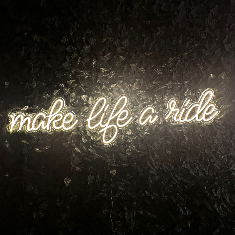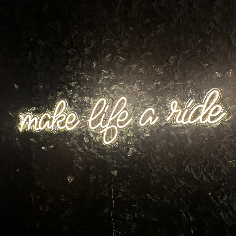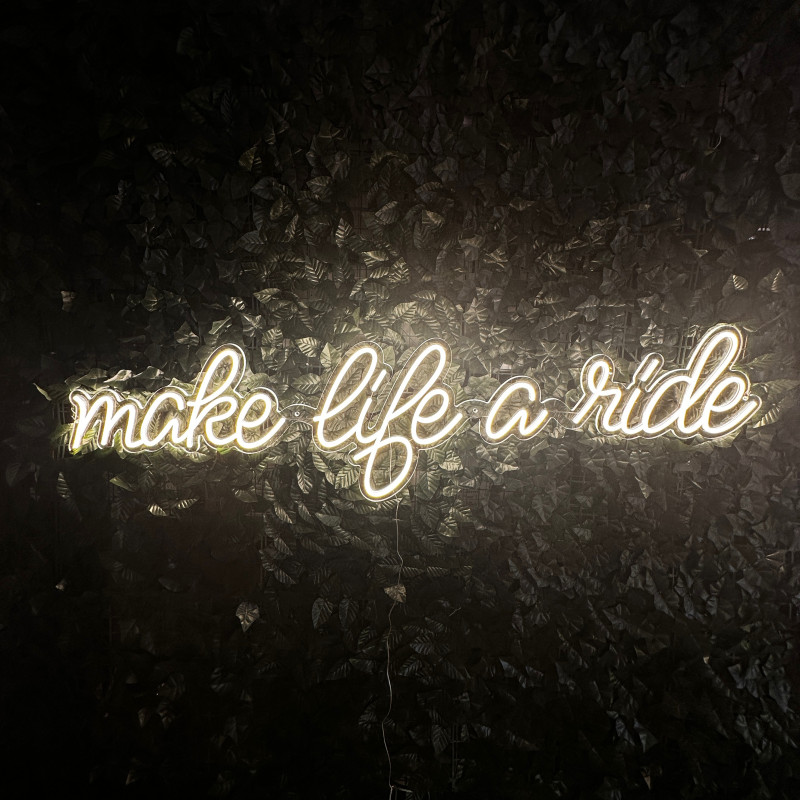 Semnul luminos make life a ride aduce un mesaj energizant, ideal ca punct de vibe în showroom, garaj, studio, sală de sport, bar sau living. Profil subțire, lumină uniformă, montaj curat, vizibilitate excelentă în foto/video. Personalizabil rapid în dimensiuni, culori și finisaje pentru potrivire cu identitatea spațiului.