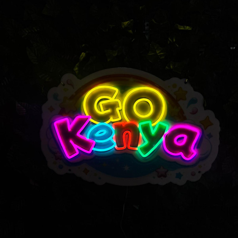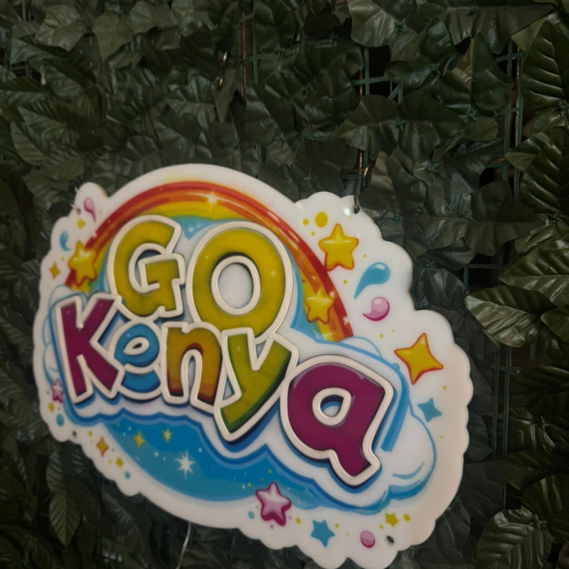ArtLEDistic a realizat semnul luminos personalizat GO KENYA pentru utilizare la interior, potrivit pentru spații dedicate copiilor, evenimente tematice și zone creative.