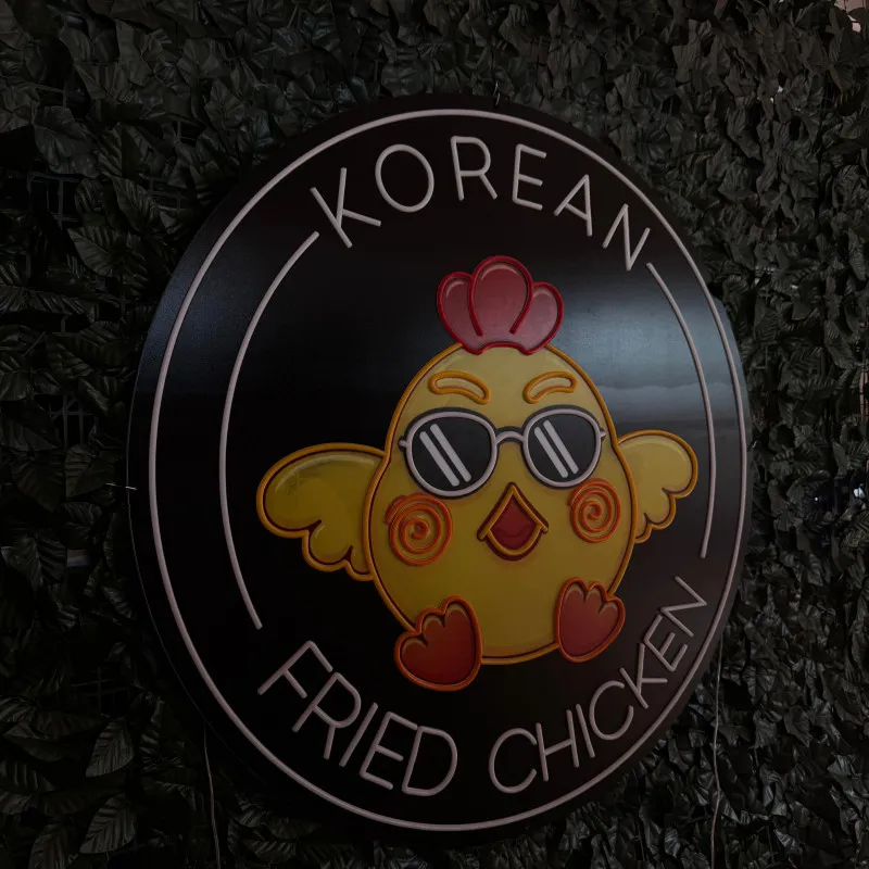 artLEDistic a realizat semnul luminos personalizat Korean Fried Chicken pentru restaurantul Korean Fried Chicken, un local inspirat din bucătăria coreeană, cunoscut pentru preparatele crocante din pui și sosurile asiatice specifice. Designul rotund cu mascotă stilizată completează identitatea vizuală a restaurantului și atrage atenția în spațiul interior.