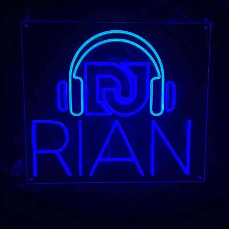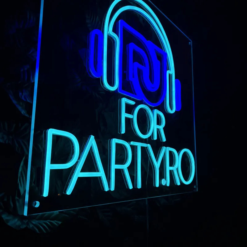 Set de semne luminoase LED personalizate realizate de artLEDistic pentru pentru DJforParty.ro, o echipă de DJ și MC din București specializată în muzică și entertainment pentru nunți, petreceri private și evenimente corporate, care oferă servicii complete de sonorizare, lumini și suport pentru organizarea evenimentelor. Proiectul include două semne luminoase separate, primul semn evidențiază logo-ul DJforParty.ro, iar al doilea prezintă numele DJ Rian, ambele folosesc același simbol grafic cu căști DJ, pentru a crea o identitate vizuală coerentă.