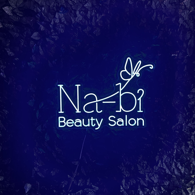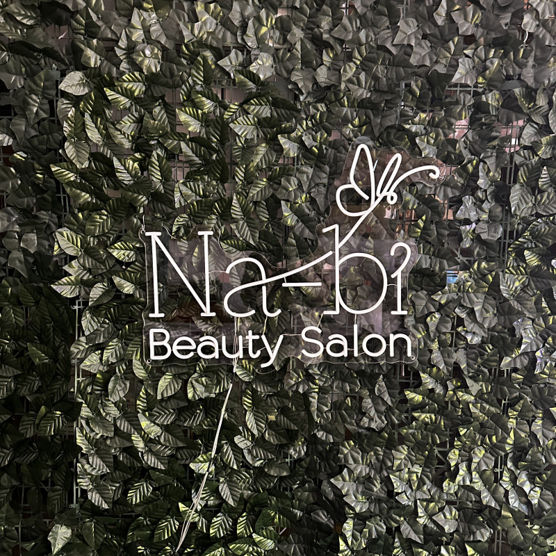 Semnul luminos este realizat pentru Na-bi Beauty Salon din București, un salon de înfrumusețare care oferă servicii profesionale de tuns, coafat, manichiură, pedichiură și estetică, într-un spațiu modern dedicat îngrijirii și stilului personal.