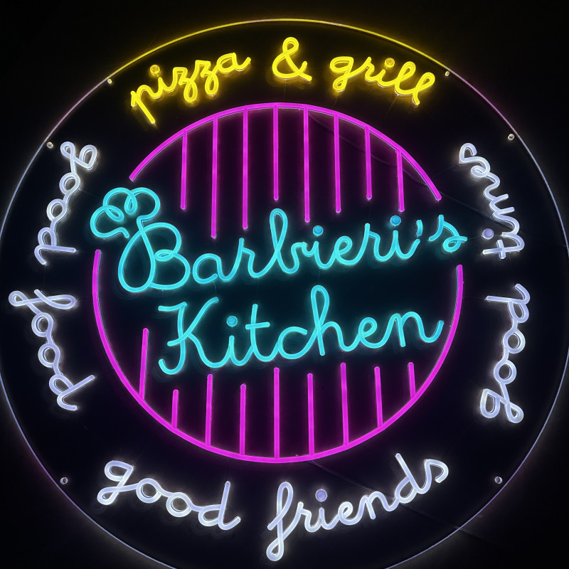 Semnul luminos personalizat Barbieri’s Kitchen este realizat de artLEDistic, producător din România specializat în semne luminoase LED personalizate, pentru interior și exterior.