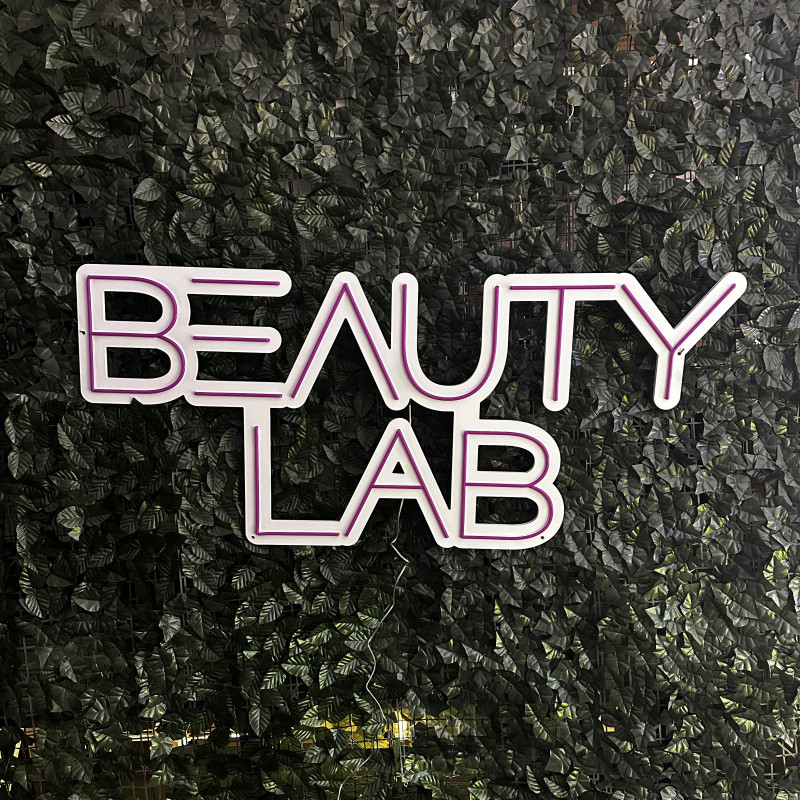 Semnul luminos personalizat Beauty LAB este realizat de artLEDistic, producător din România specializat în semne luminoase LED personalizate pentru interior și exterior pentru saloane și clinici din industria beauty.