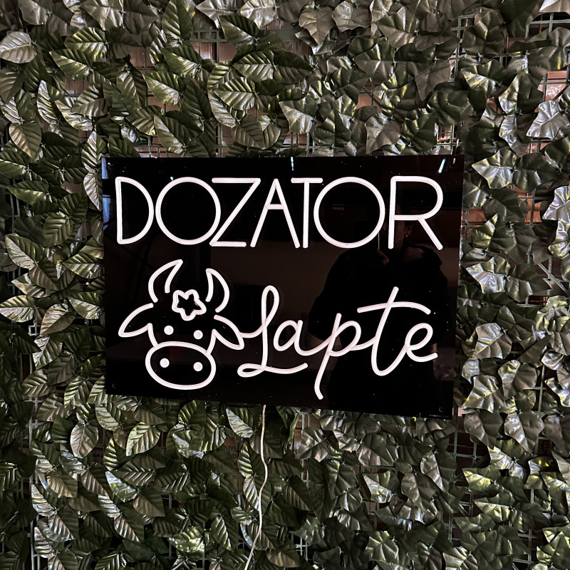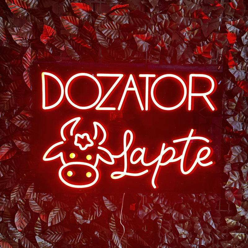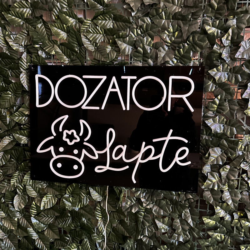 Semnul luminos personalizat Dozator Lapte este realizat de artLEDistic, producător din România specializat în semne luminoase LED personalizate de interior și exterior pentru spații comerciale și puncte de vânzare directe.