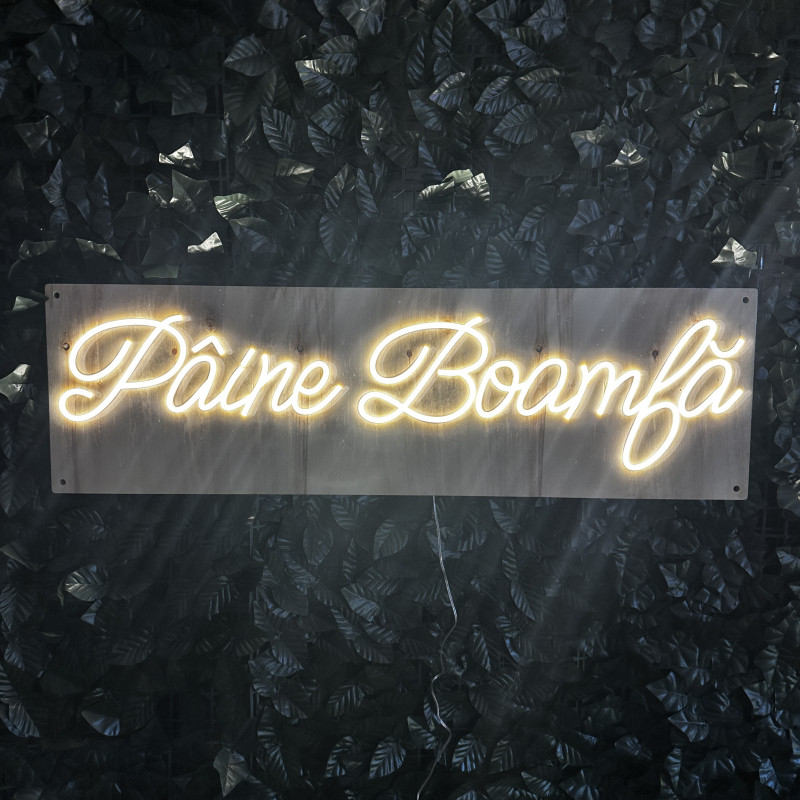 Semnul luminos personalizat Pâine Boanfa este realizat de artLEDistic, producător din România specializat în semne luminoase LED personalizate pentru brutării, bistrouri și spații HoReCa. Proiectul este realizat pentru utilizare la interior și susține identitatea vizuală a brandului prin iluminare caldă și design cursiv.