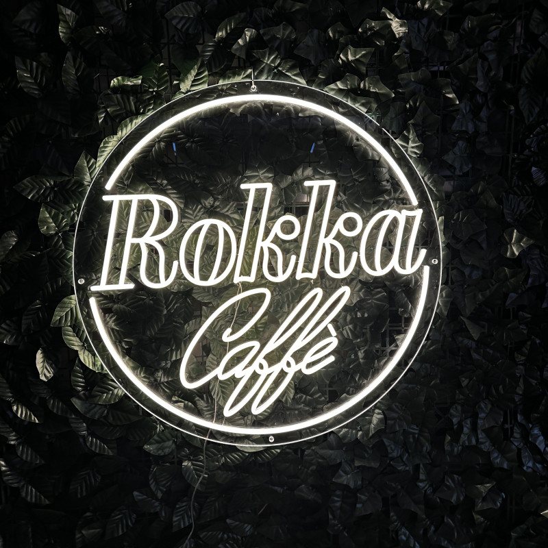 artLEDistic, producător din România specializat în semne luminoase LED personalizate, a realizat semnul luminos Rokka Caffe. Semnul are formă rotundă, iar baza este din plexiglas transparent, decupat regulat pe contur circular, pentru un aspect curat și echilibrat. Iluminarea este realizată cu bandă LED cu cipuri, culoare alb cald, protejată cu silicon alb. Sistemul include telecomandă cu dimmer pentru reglarea intensității și kit cu patru distanțiere transparente pentru montaj sigur pe perete. Designul este potrivit pentru cafenele, coffee shop-uri, lounge-uri sau bistrouri care doresc un element vizual central și ușor de recunoscut.