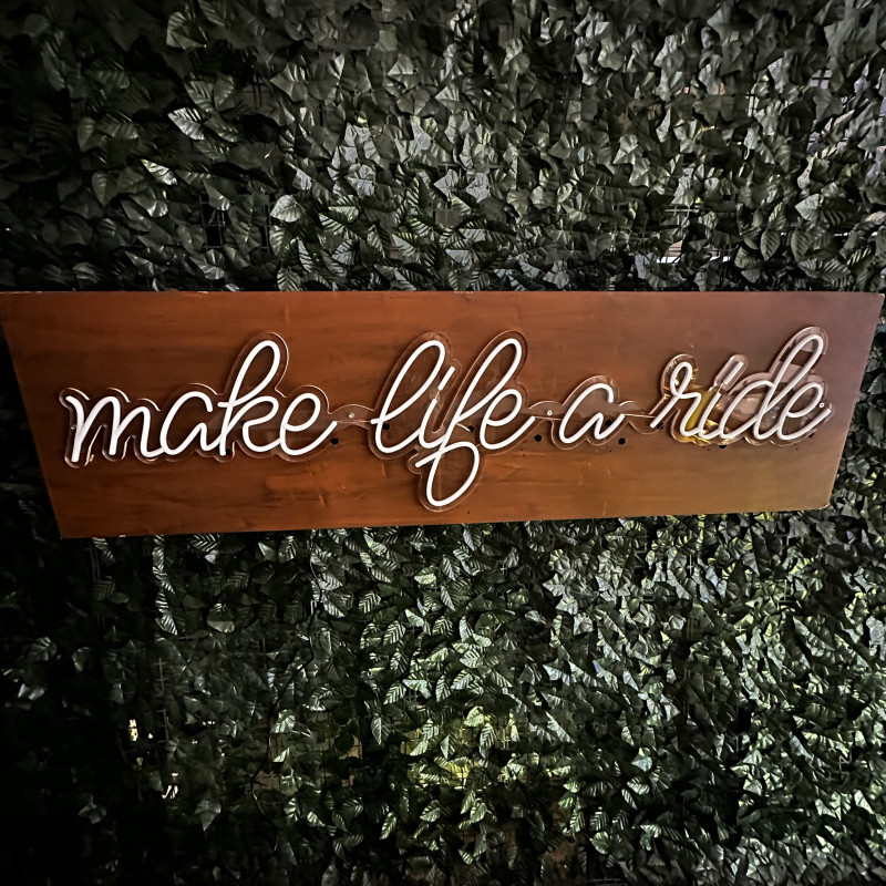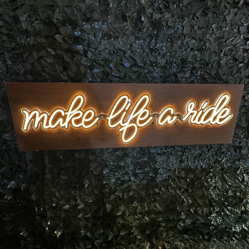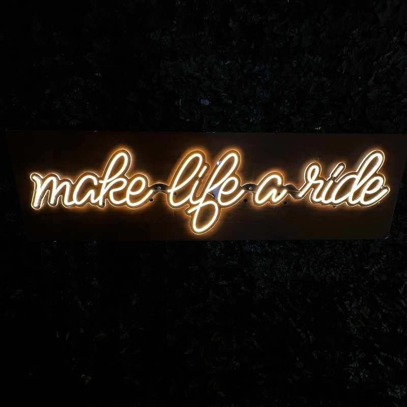 Semnul luminos personalizat make life a ride este realizat pentru BMW Motorrad MotoHub, spațiu dedicat pasionaților de motociclete BMW, echipamente și experiențe pe două roți. Mesajul susține identitatea brandului și completează zona de showroom printr-un element vizual clar și memorabil.