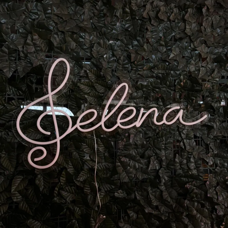 artLEDistic a realizat semnul luminos personalizat Selena, un element decorativ elegant pentru spații interioare precum saloane, studiouri sau zone foto. Designul cursiv inspirat din simbolul muzical cheie sol creează un punct vizual puternic și oferă personalitate spațiului.