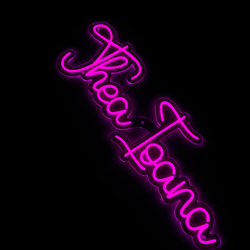 Semnul luminos „Thea Ioana” este realizat din plexiglas transparent decupat neregulat la forma semnului, cu iluminare LED magenta, elegantă și clară. Textul cursiv dă un aspect plăcut și personal. Îl expui suspendat cu fire transparente. Se potrivește în camera copilului, la aniversări, în studio foto sau în colțuri pentru poze.