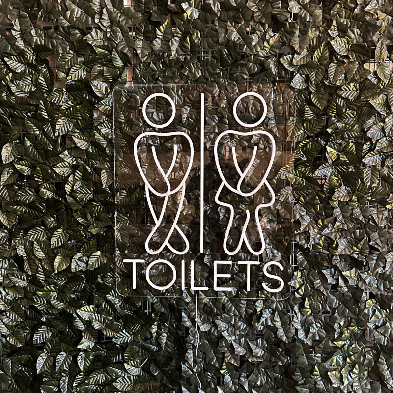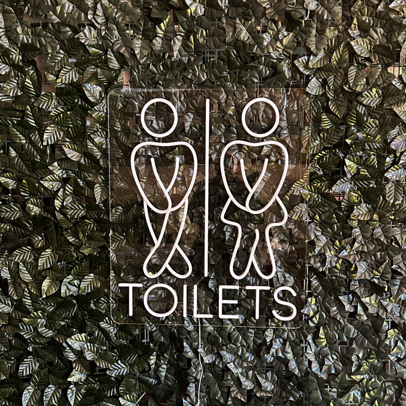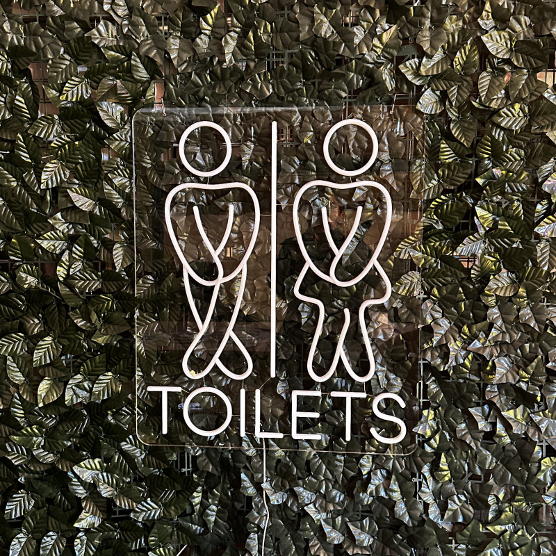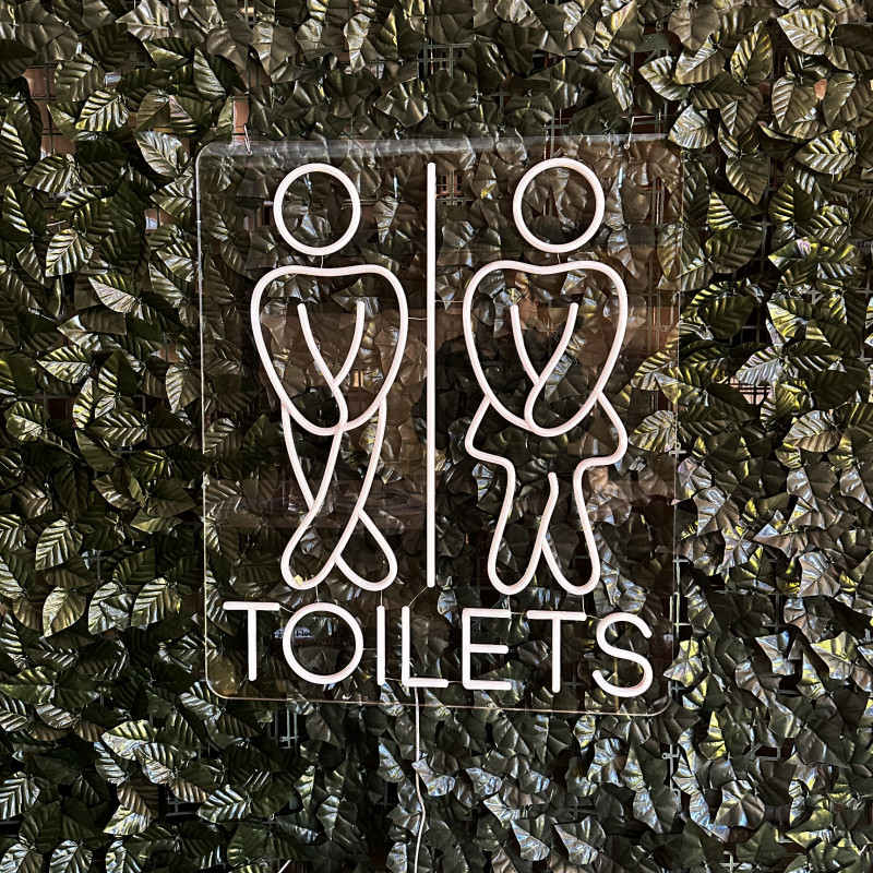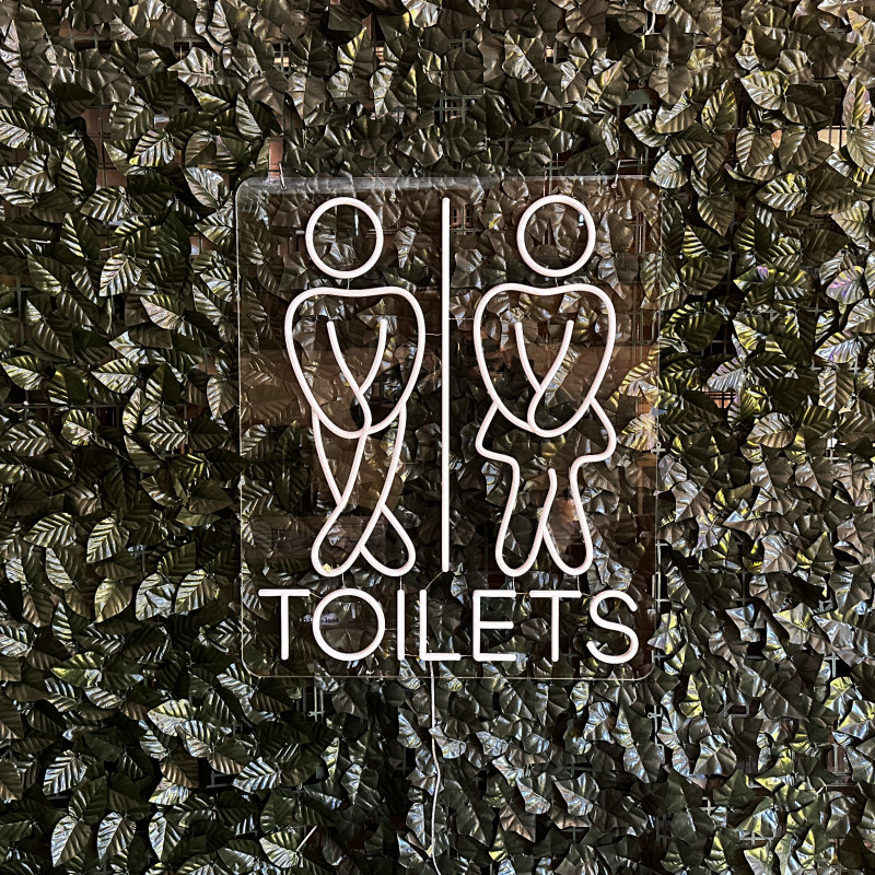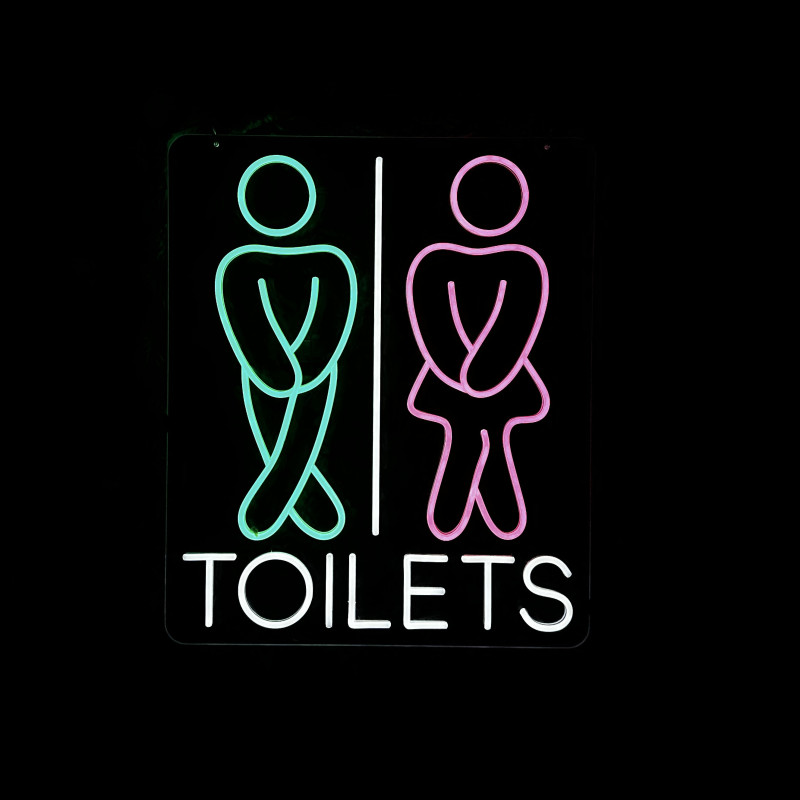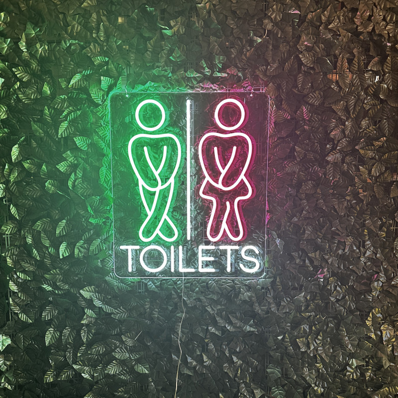 Semnul luminos „TOILETS” cu pictograme fată/băiat asigură orientare clară în spații cu trafic (restaurante, cafenele, birouri, săli de eveniment). Lumină uniformă, profil subțire, montaj curat; vizibil de la distanță și fotogenic. Personalizabil rapid (dimensiuni, culori, finisaje, limbă) și disponibil cu săgeți / iconografie ADA-like pentru fluxuri direcționale.