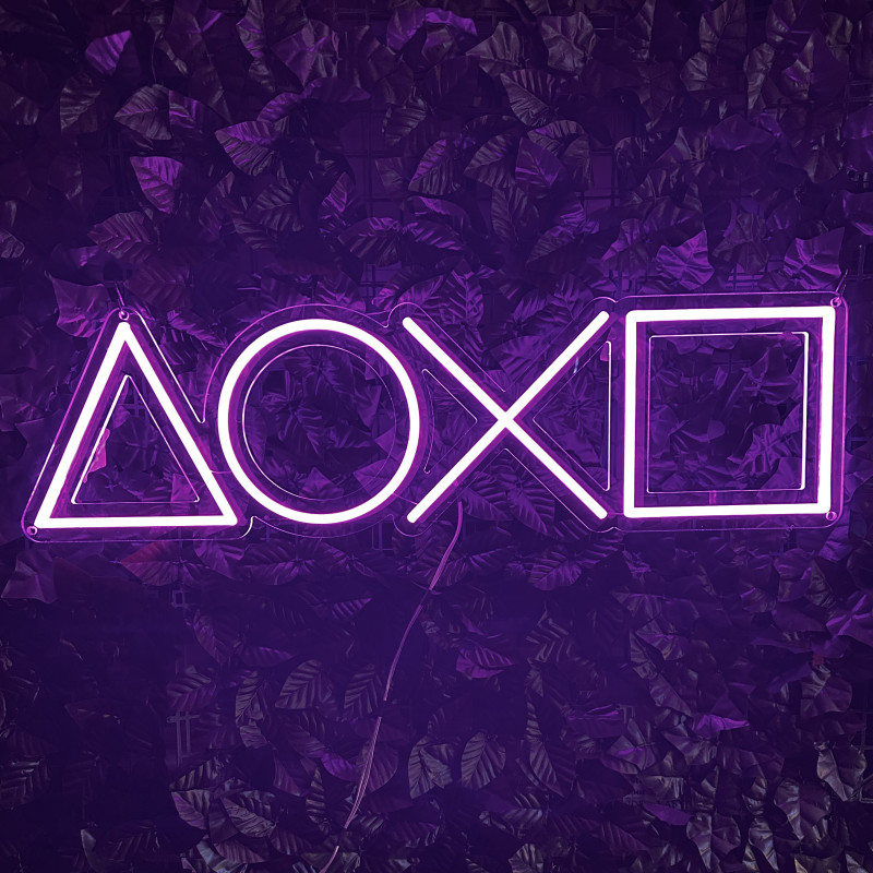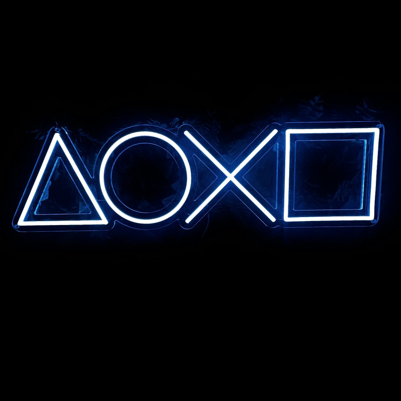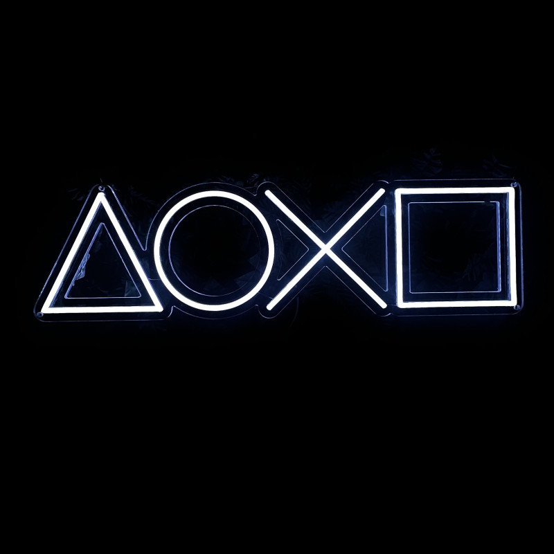 Set de 4 semne luminoase cu simboluri universale — triunghi, cerc, X, pătrat — potrivite pentru zone de gaming, baruri tematice, studio, lobby creativ, photo spot. Profil subțire, lumină uniformă, montaj curat; se pot monta ca instalație unitară sau piese individuale. Personalizabile rapid (dimensiuni, culori, finisaje) pentru a se potrivi oricărui decor.